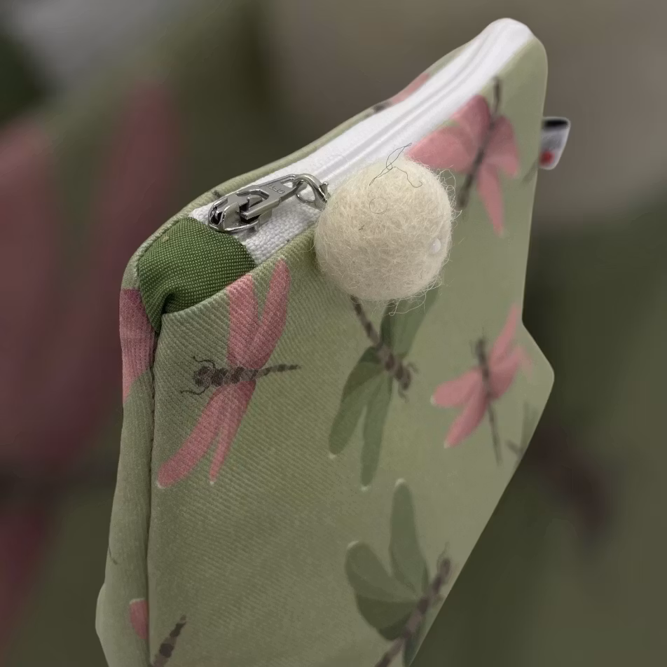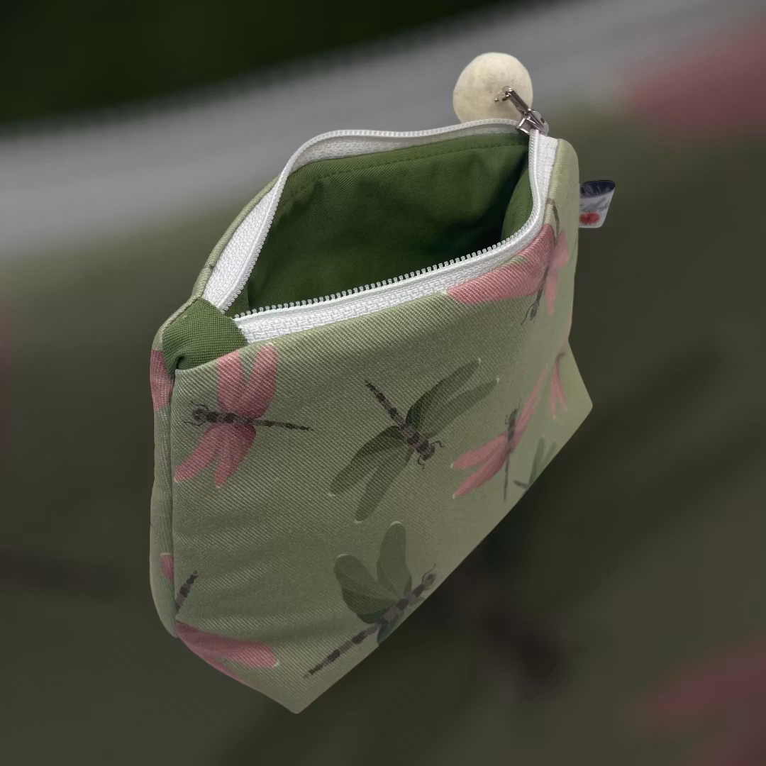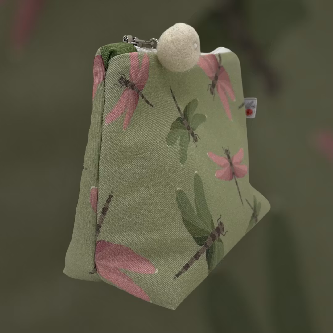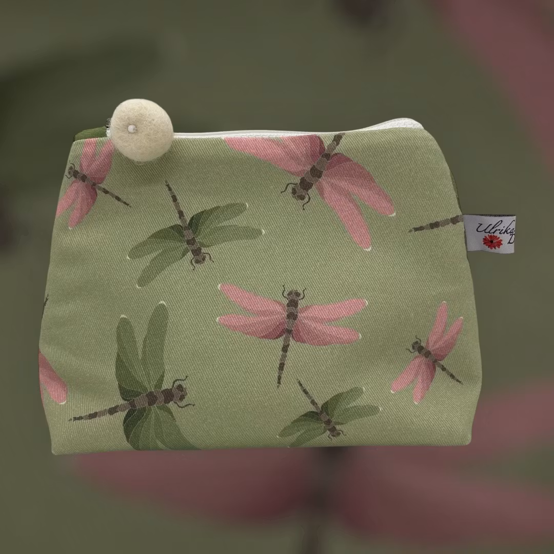liten makeup-väska/fodral i mossgröna sländamönstret Maarit