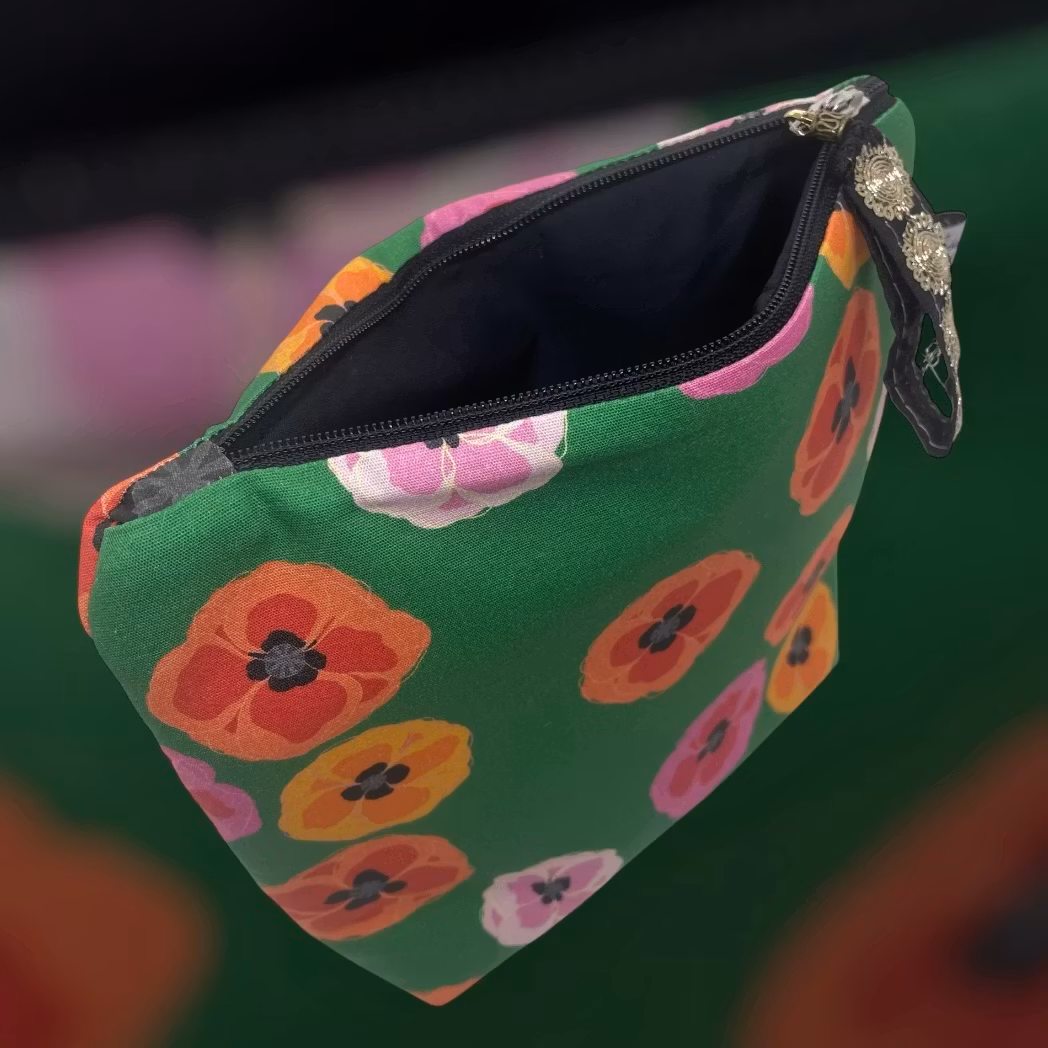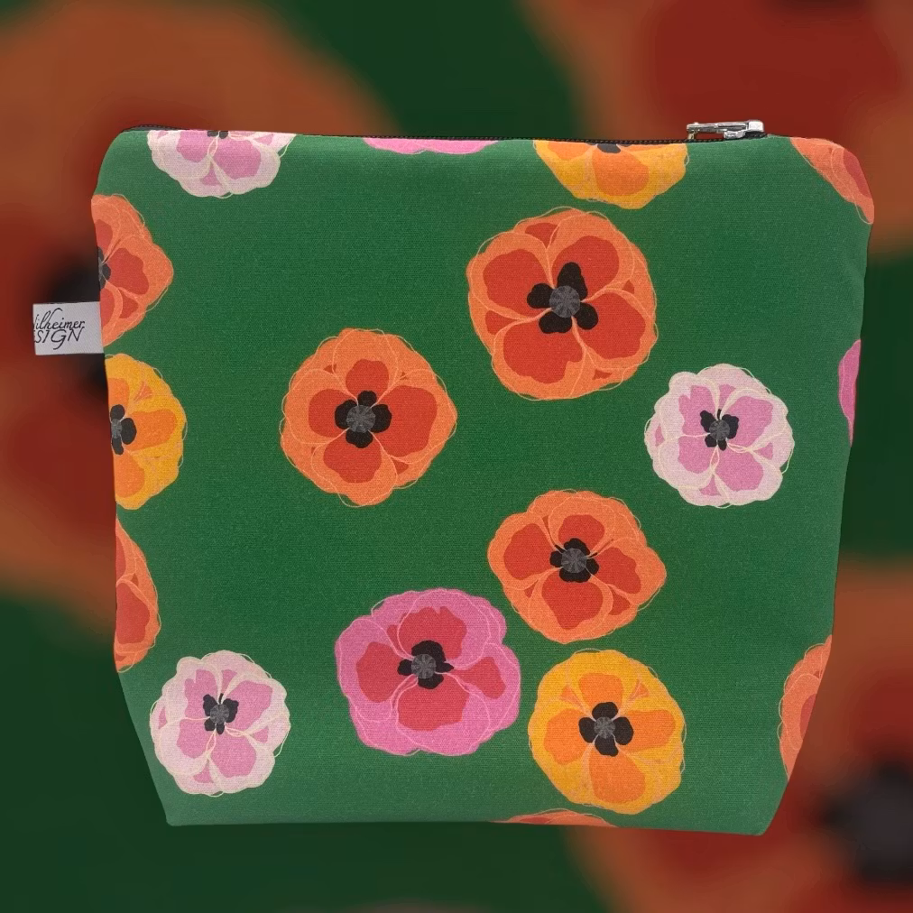 större makeup-väska/mindre necessär i Poppy bonanza på grönt