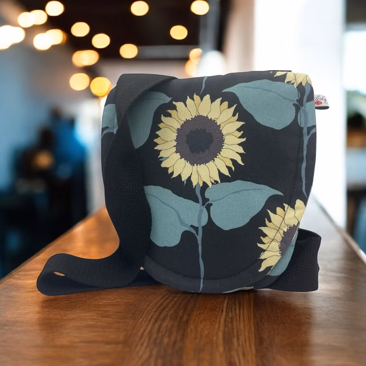 En liten crossbody-väska för det nödvändigaste, med solrosor på!