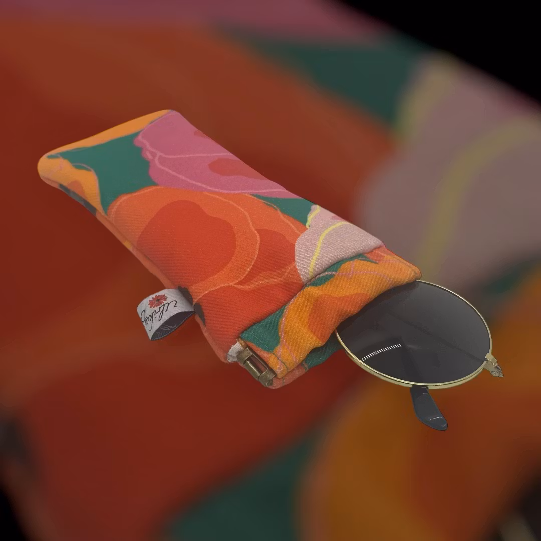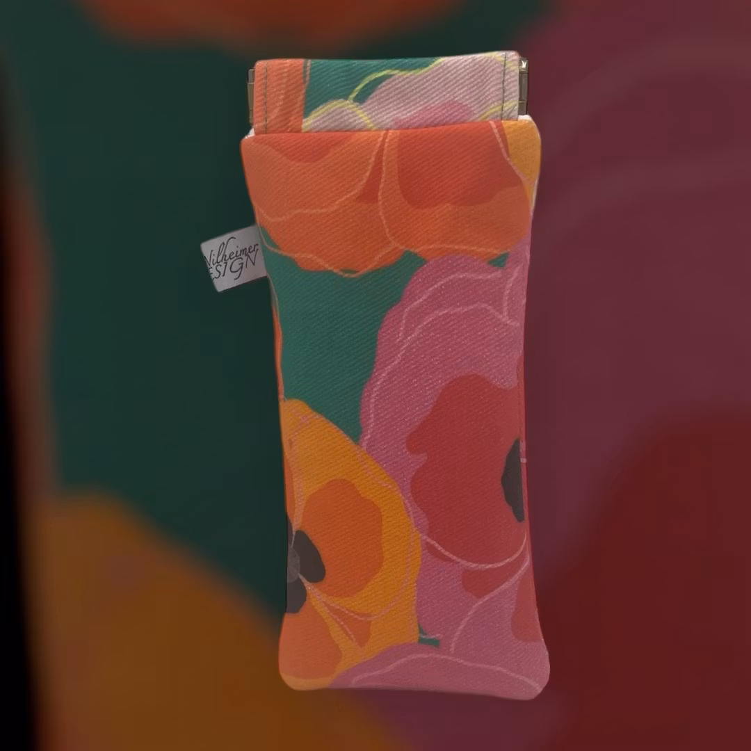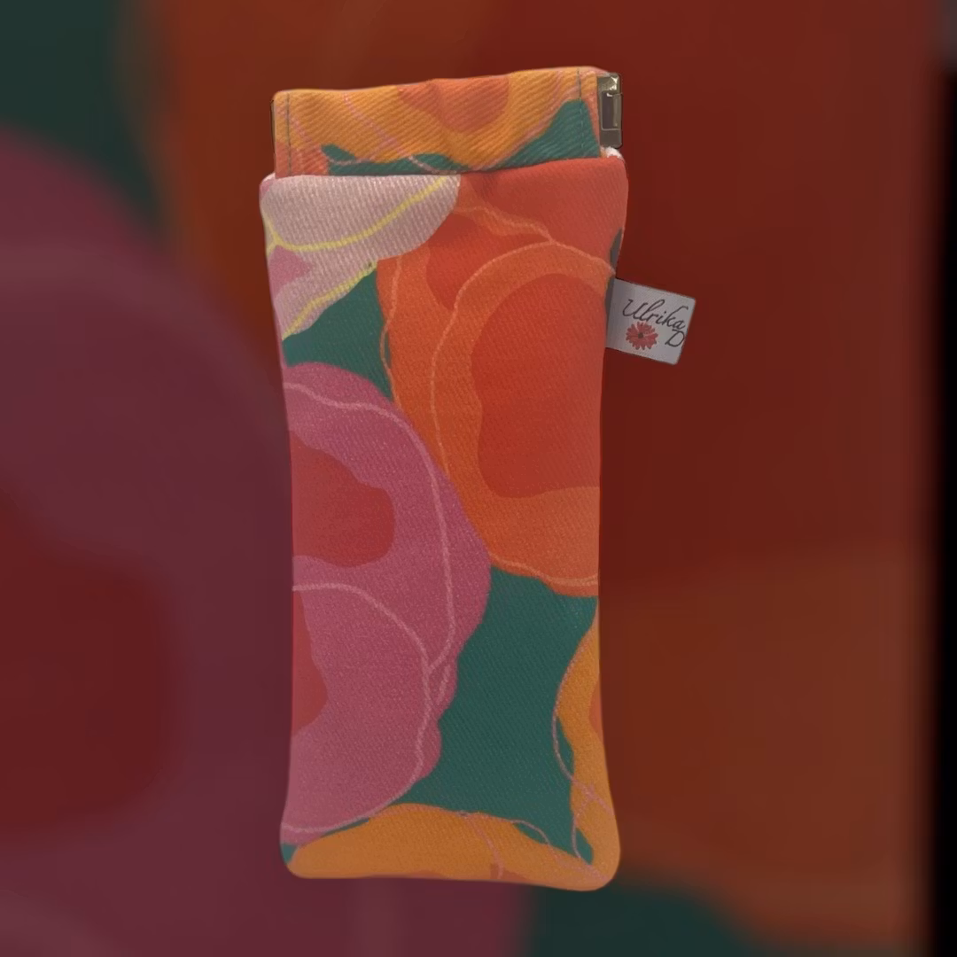 Fodralet mäter cirka 18 cm på höjden inklusive den klassiska klämöppningen och är 8 cm på bredaste stället. Yttertyget består av bomullstwill 265 g/m2 och som även innehåller 3 % elastan. Fodret är sytt av ett vitt bomulltyg av fin kvalitet jag hade i gömmorna. Fodralet skyddar dina glasögon i form av oeko-tex standard 100 hobbypolyester. Jag hade turen att hitta två oöppnade förpackningar på loppis och du som känner till mitt miljötänk, vet att jag är nöjd när jag kan återvinna och ta tillvara. Hållbart, funktionellt och vackert på en och samma gång!