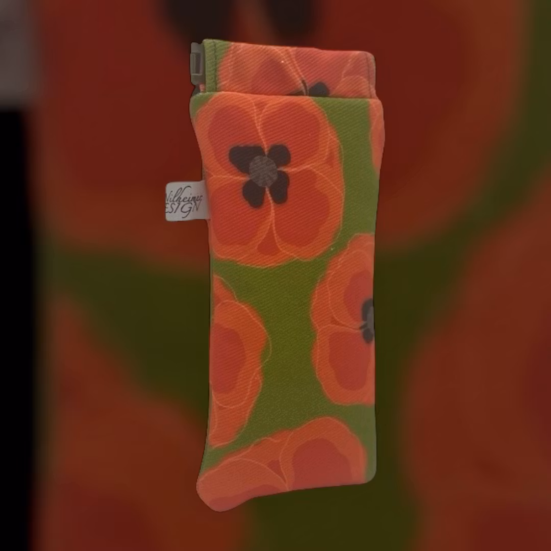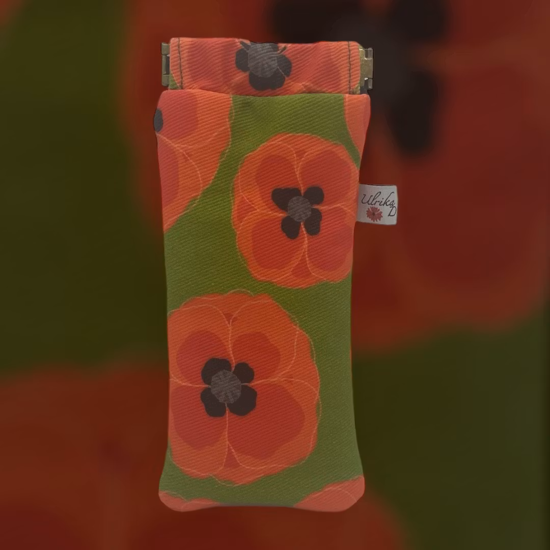 Fodralet mäter cirka 18 cm på höjden inklusive den klassiska klämöppningen och är 8 cm på bredaste stället. Yttertyget består av bomullstwill 265 g/m2 och som även innehåller 3 % elastan. Fodret är sytt av ett svart bomulltyg av fin kvalitet jag hade i gömmorna. Fodralet skyddar dina glasögon i form av oeko-tex standard 100 hobbypolyester. Jag hade turen att hitta två oöppnade förpackningar på loppis och du som känner till mitt miljötänk, vet att jag är nöjd när jag kan återvinna och ta tillvara. Hållbart, funktionellt och vackert på en och samma gång!
