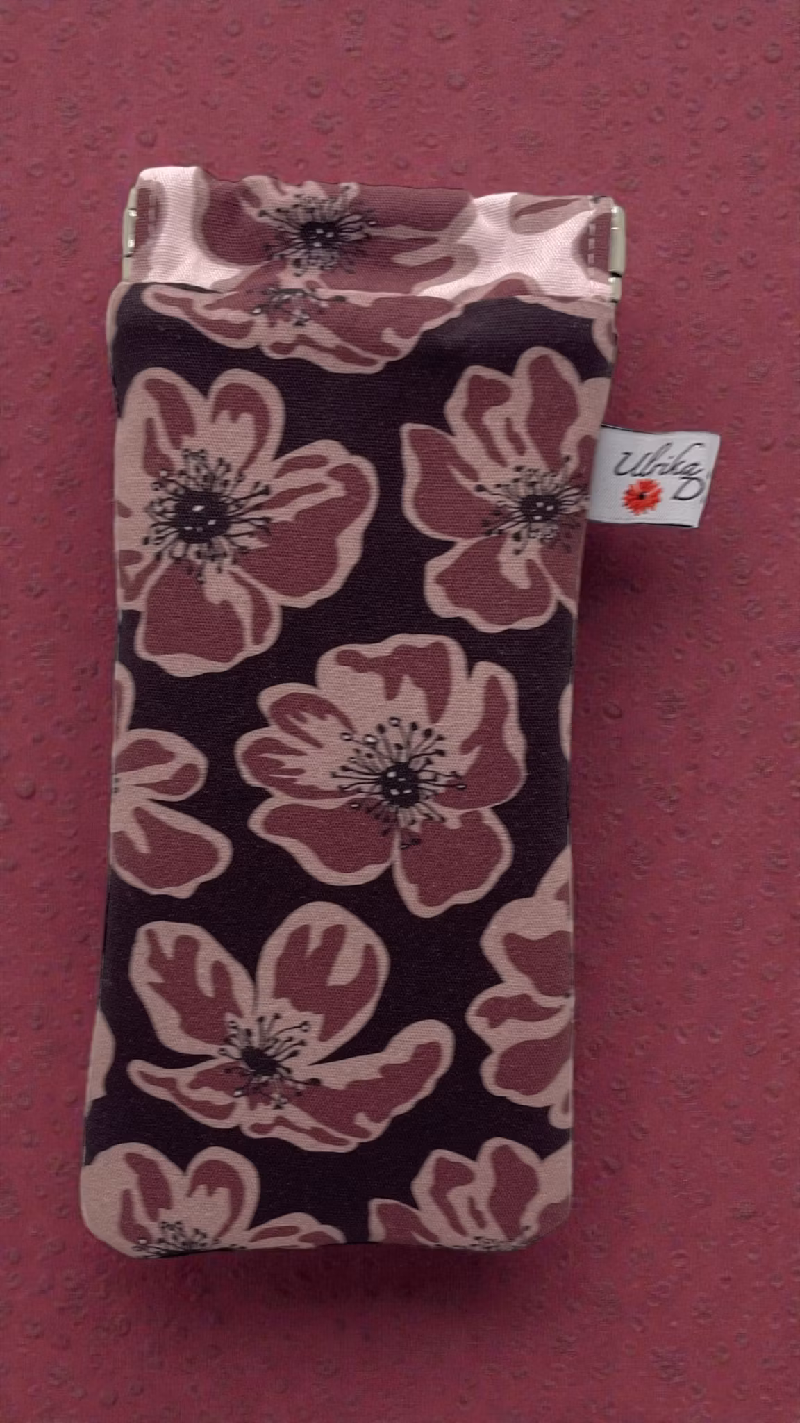 glasögonfodral med klämöppning i mönstret Big n bloomin på mörkt vinröd och puderrosa