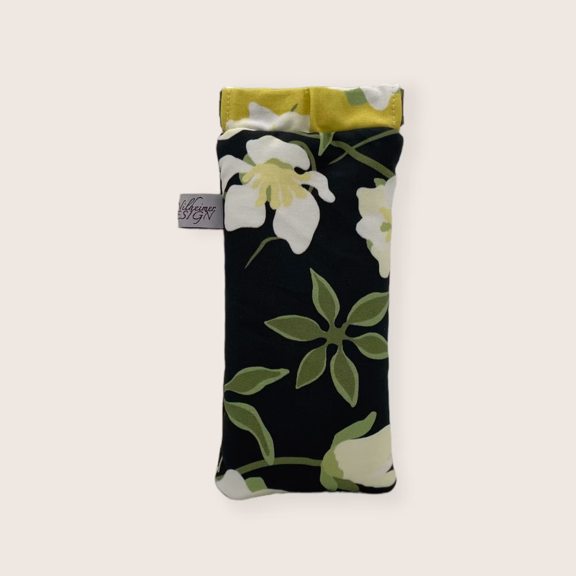glasögonfodral på julrosmönstret Belle Helle på färgerna decembernatt och vintersol