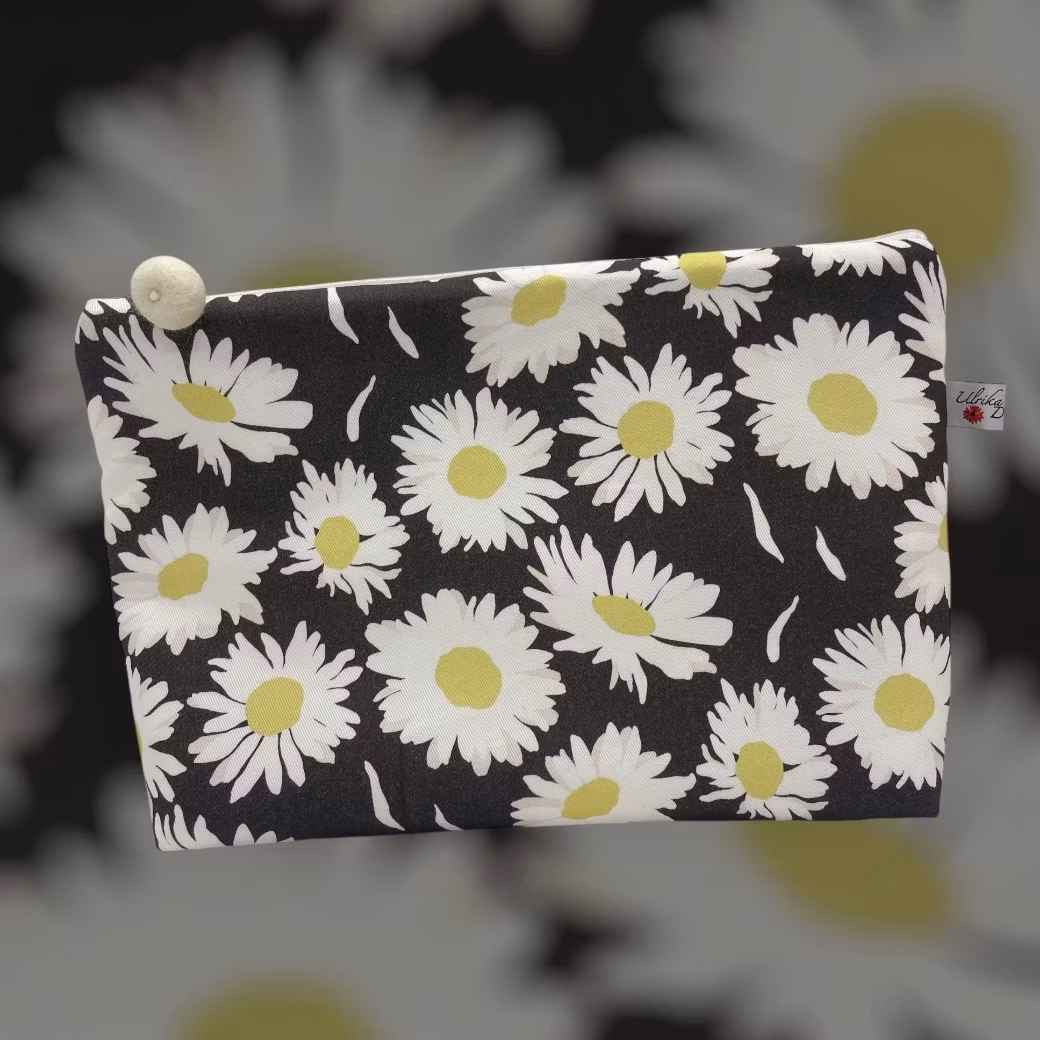 Mellanstora necessären i bruna prästkragemönstret Anna