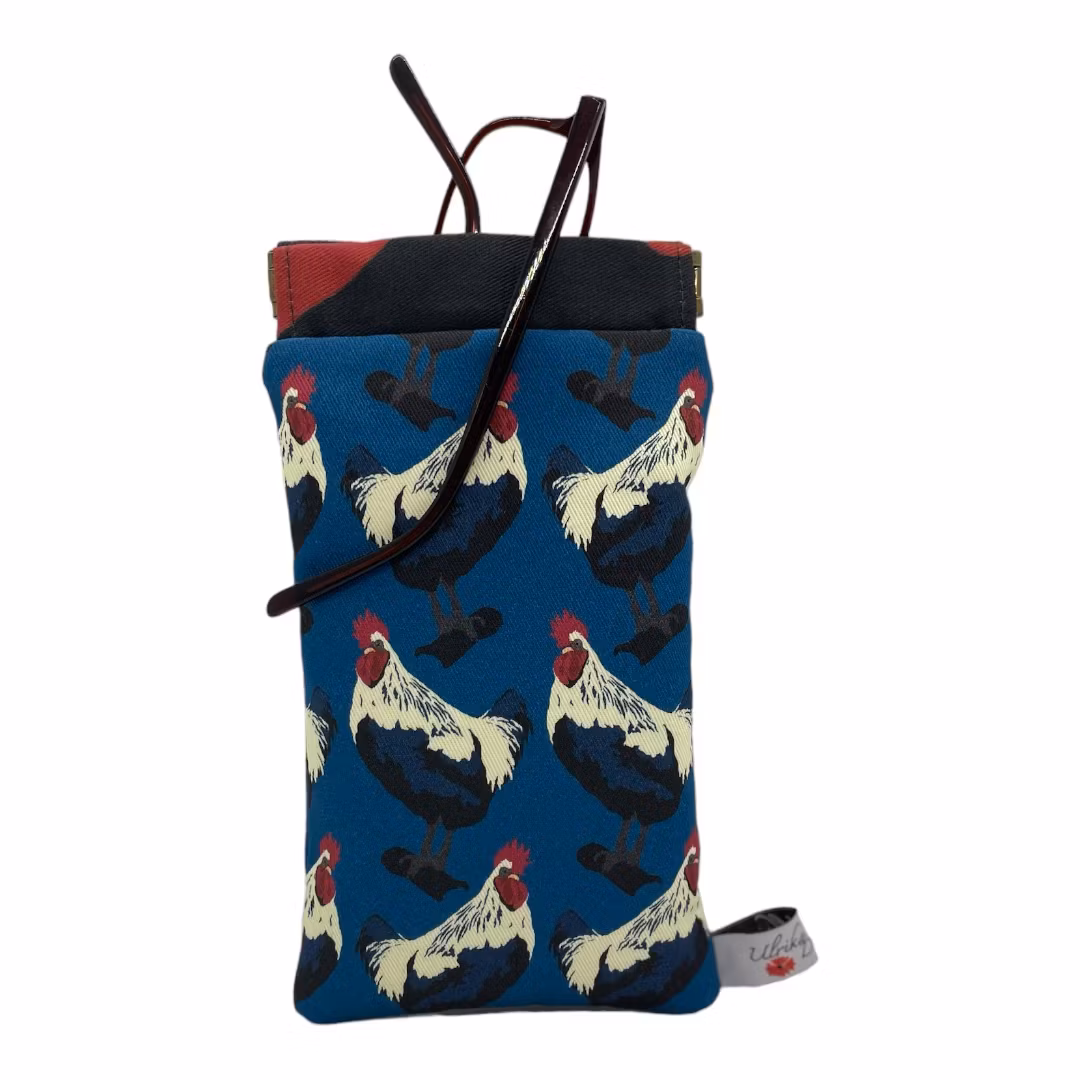 mobil- och/eller glasögonfodral i mönstret Tuppar sig på petrol