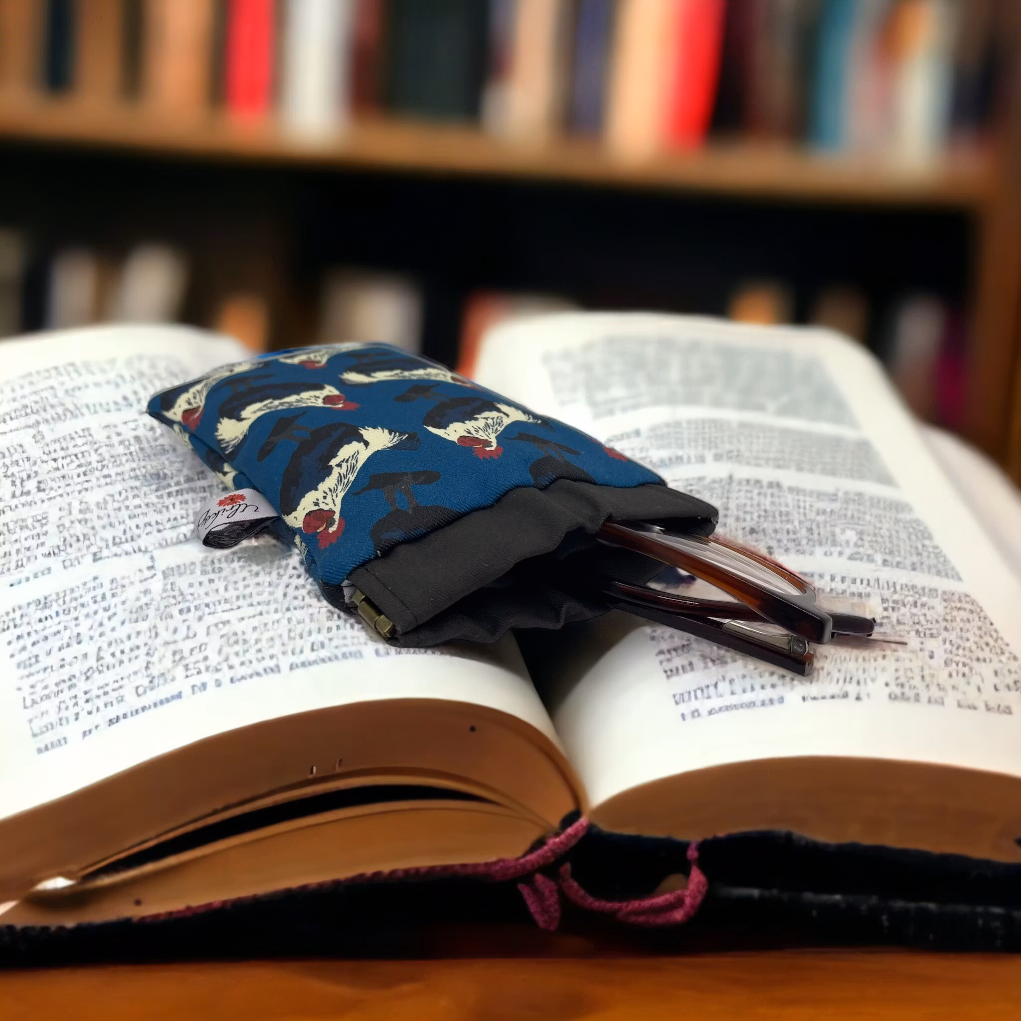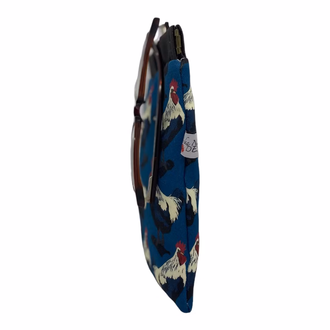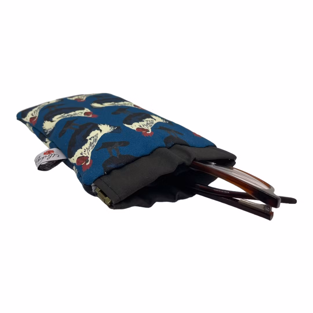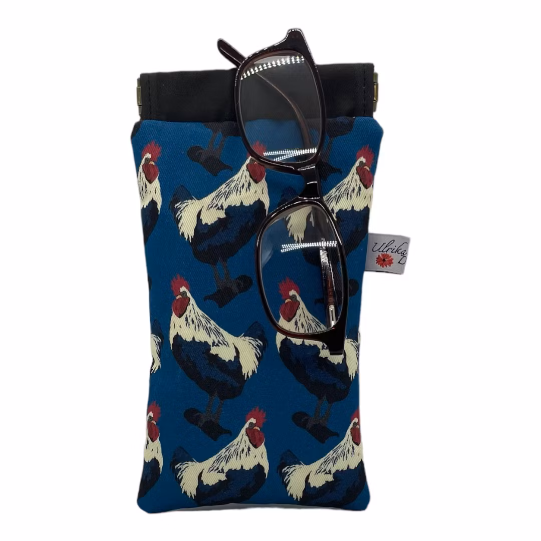 mobil- och/eller glasögonfodral i mönstret Tuppar sig, min stiliga tupp på petrol