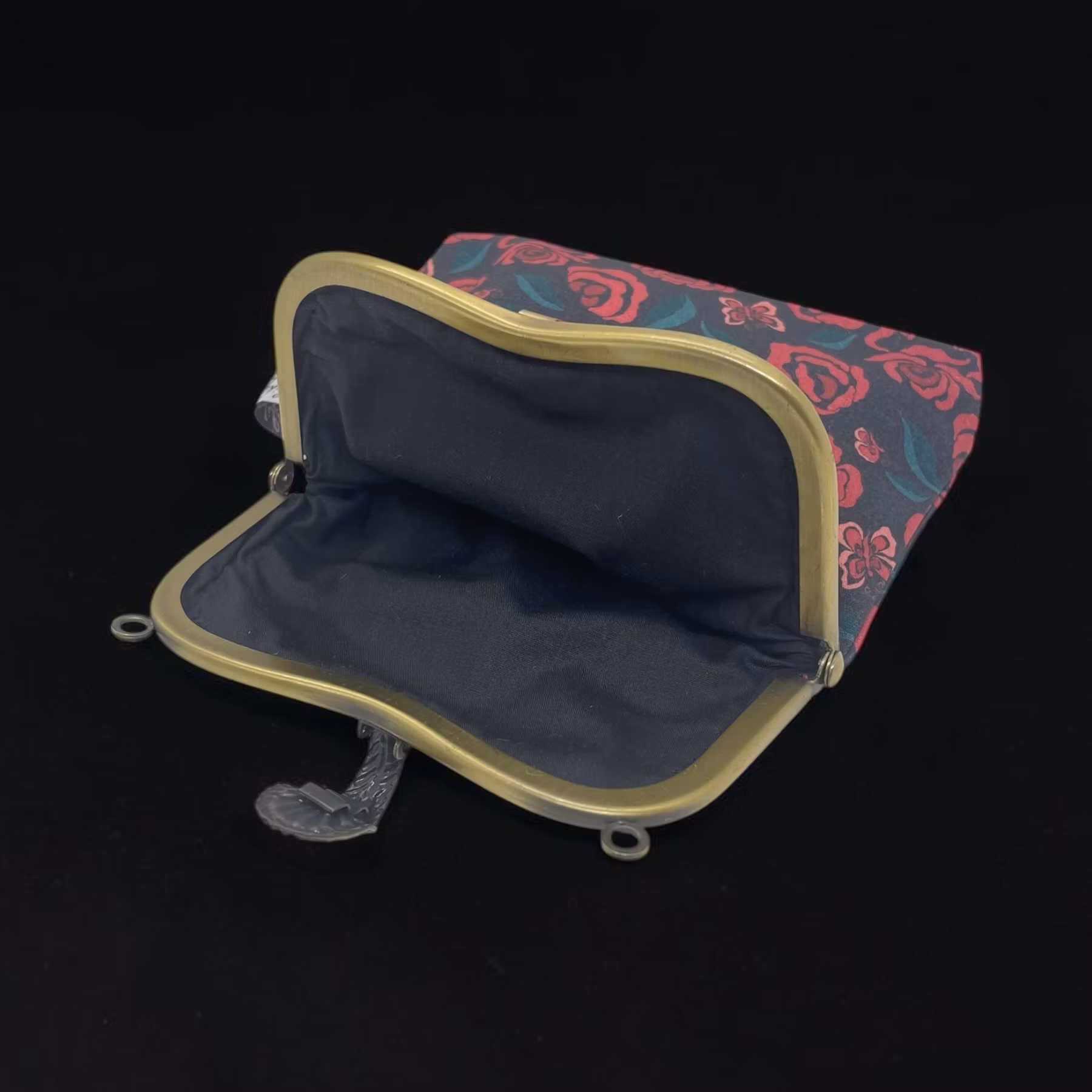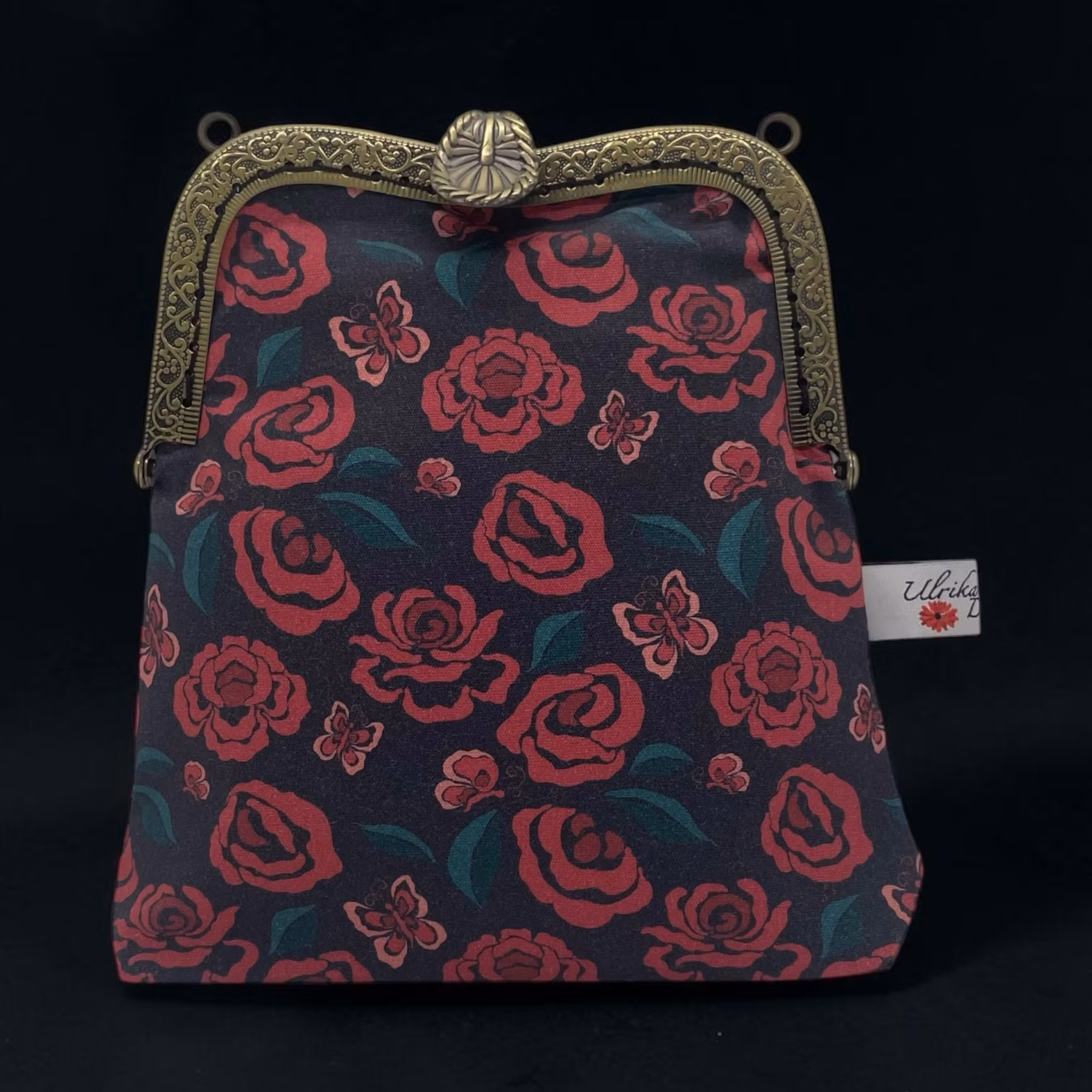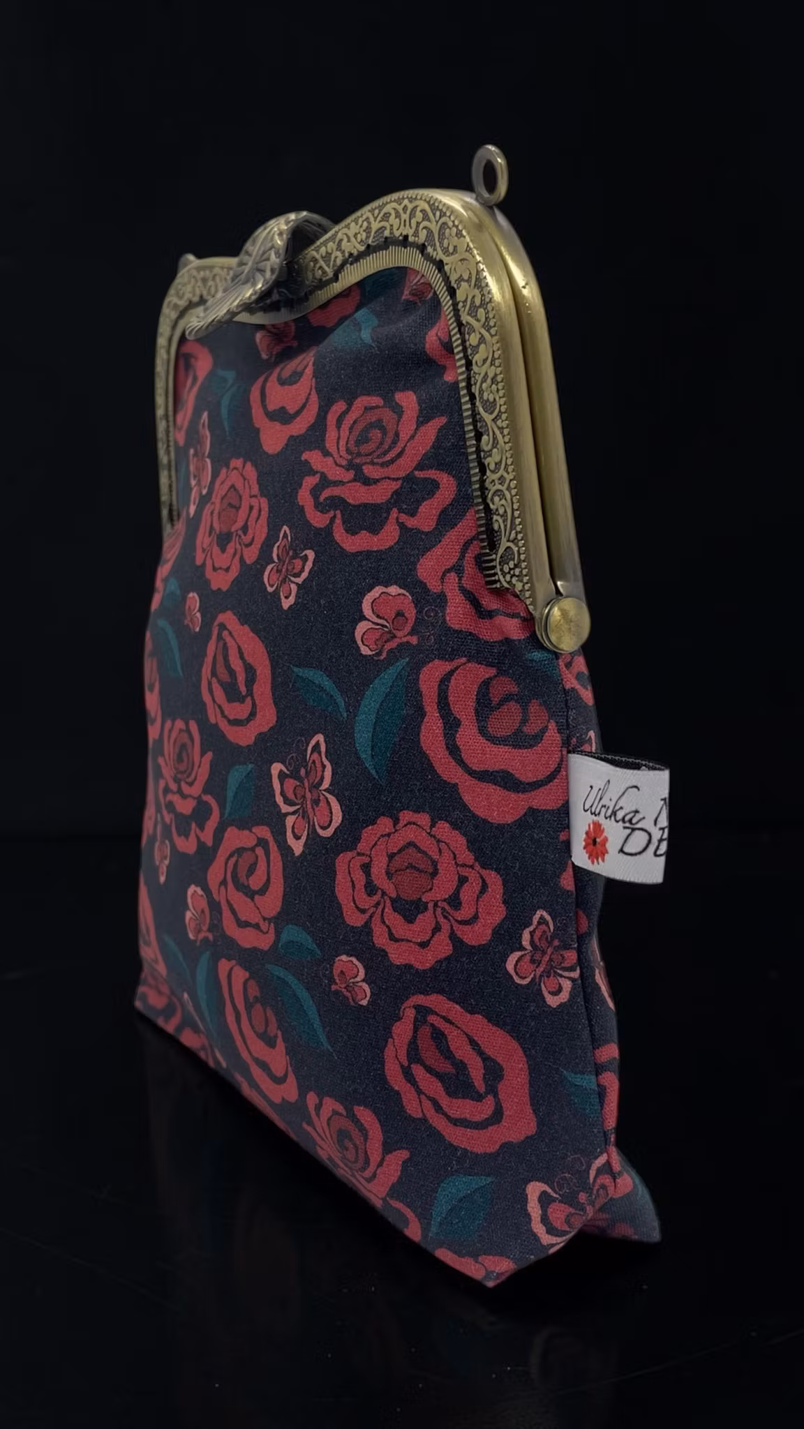 necessär/makeupväska med kyssknäppe, i mönstret Mormors rosor