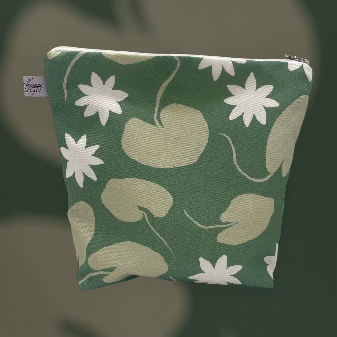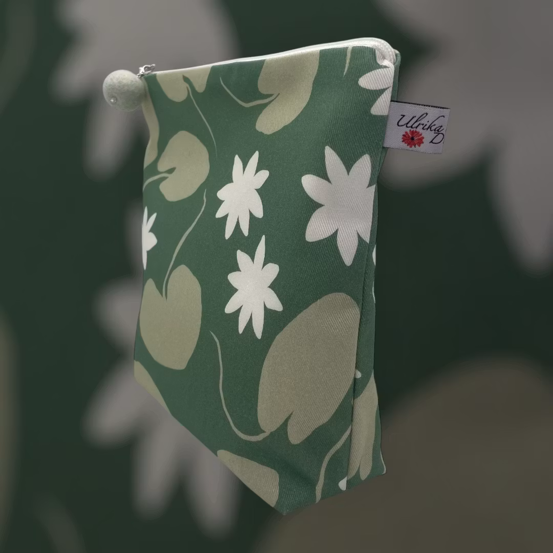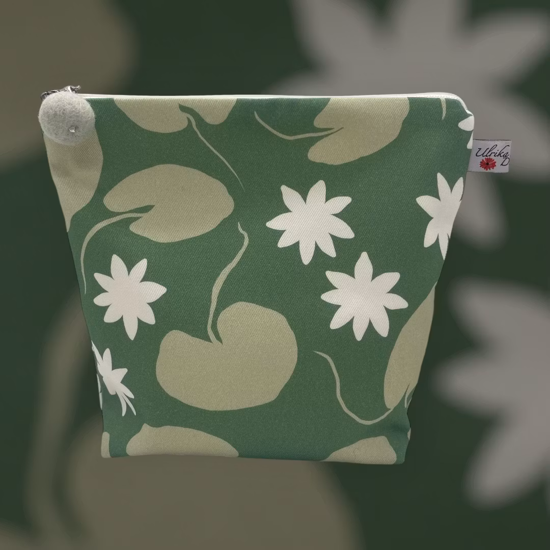 större makeup-väska/liten necessär i mönstret Water lilies