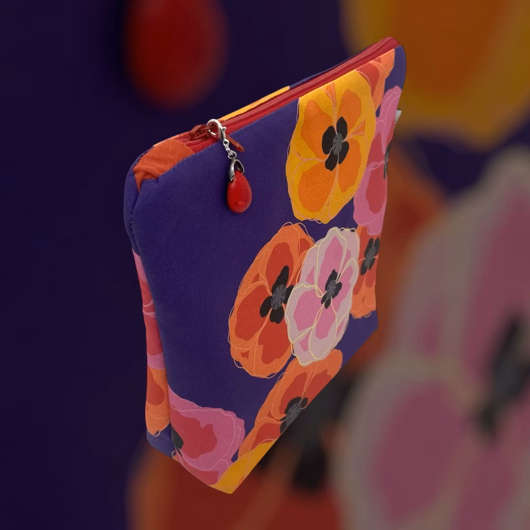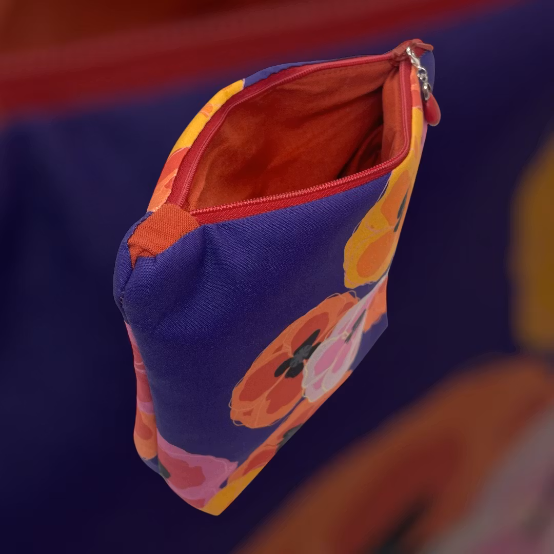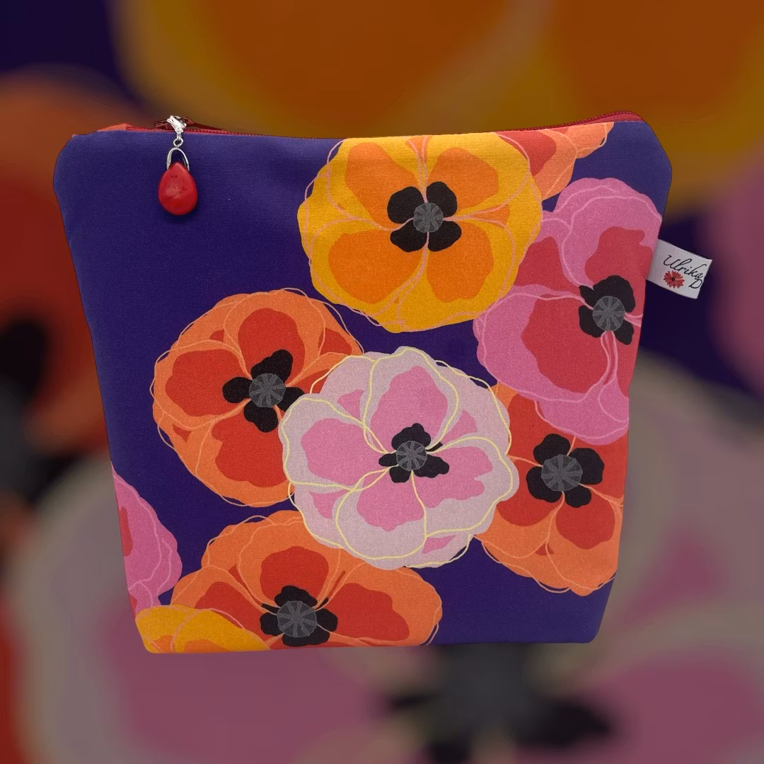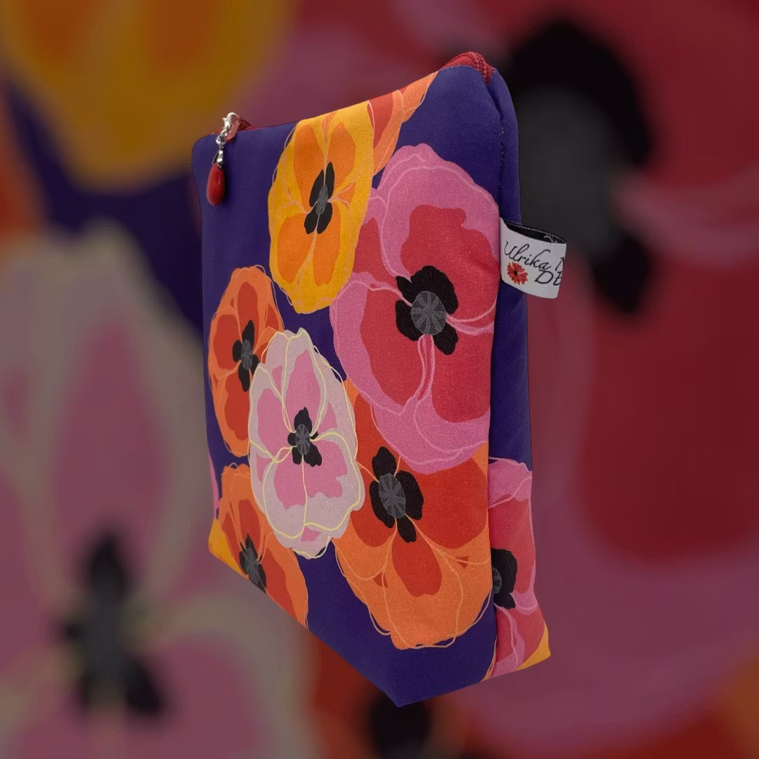 större makeup-väska/mindre necessär i Bonanziga vallmos på lila