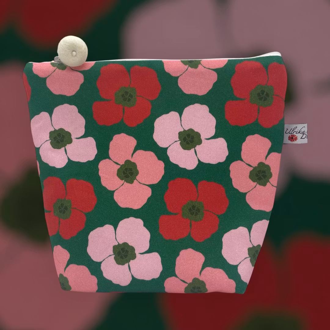 Mitt mönster Keshi, inspirerat av det japanska formspråket och som betyder just vallmo på japanska! Här får tandborsten plats, och den lilla packningen för någon enstaka övernattning. Kanske som en dekorativ förvaring någonstans i hemmet eller som förvaring i den större handväskan.