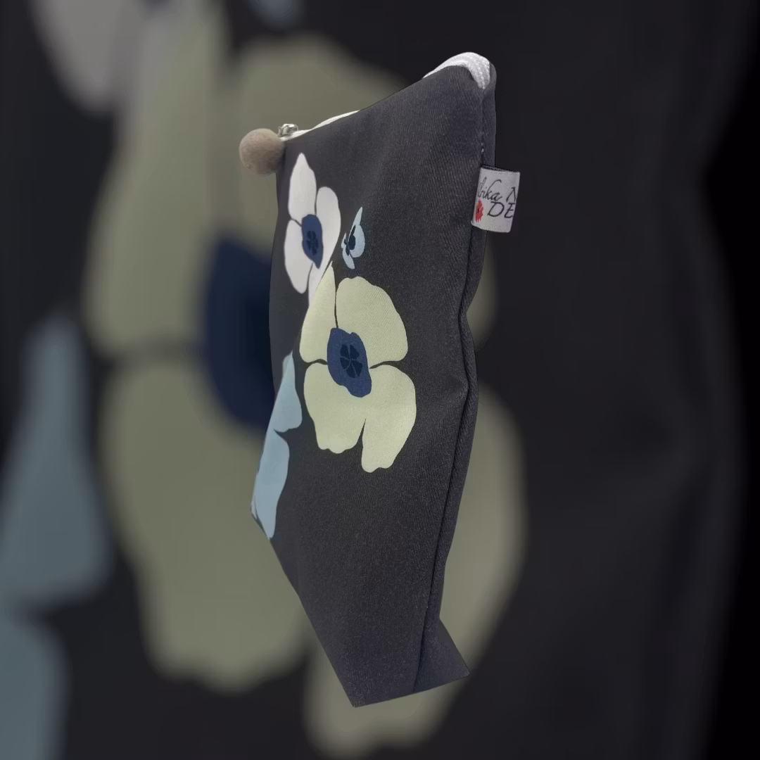 större makeup-väska/mindre necessär på brunt, matchar vallmomönstret Keshi!