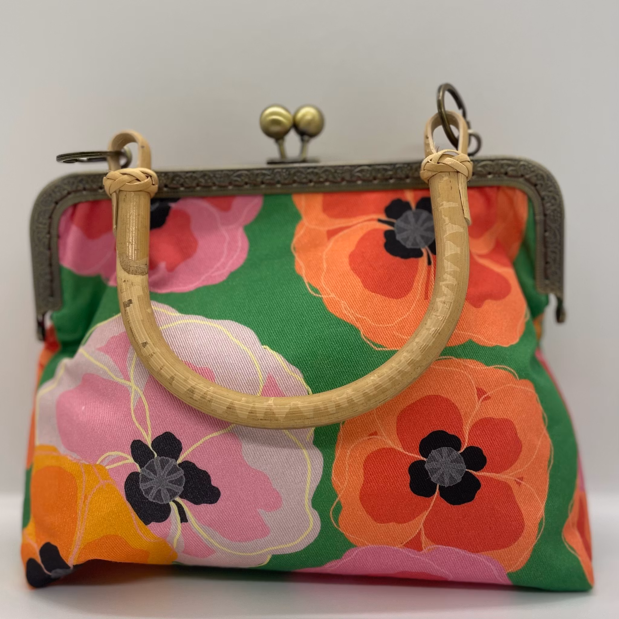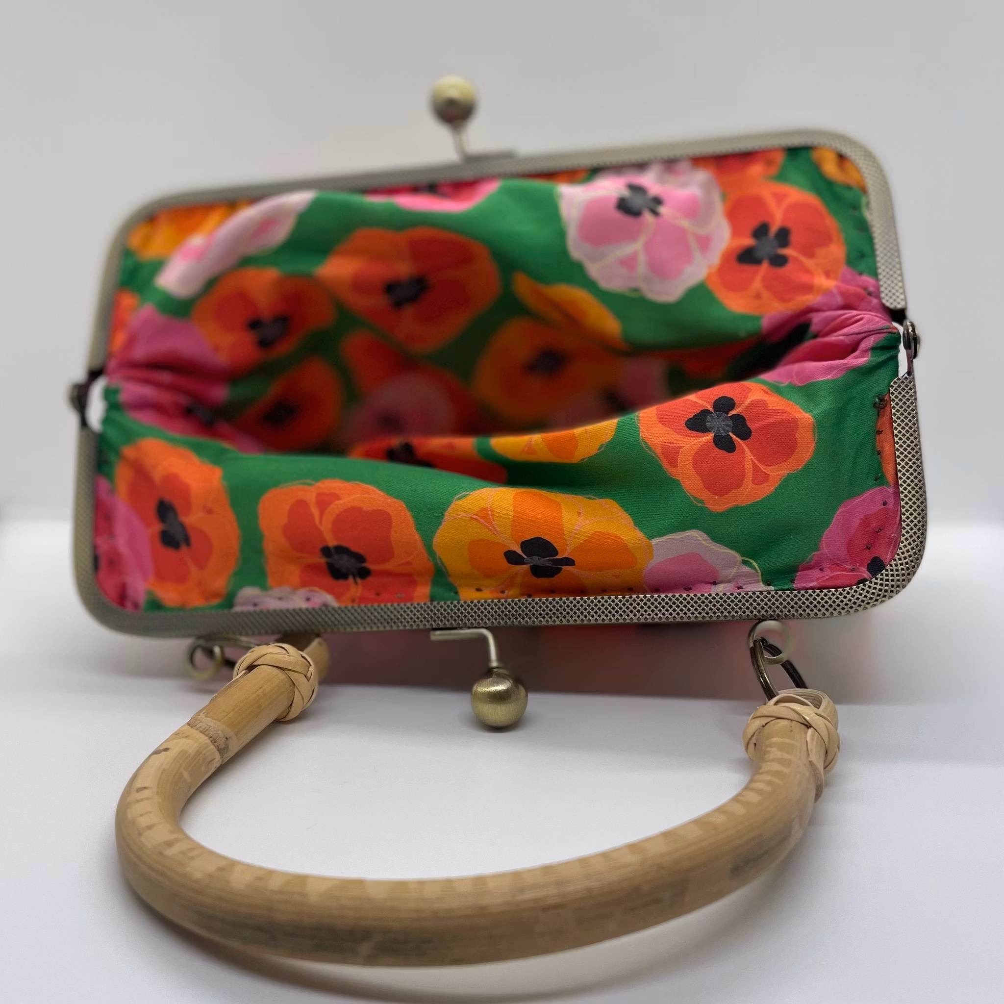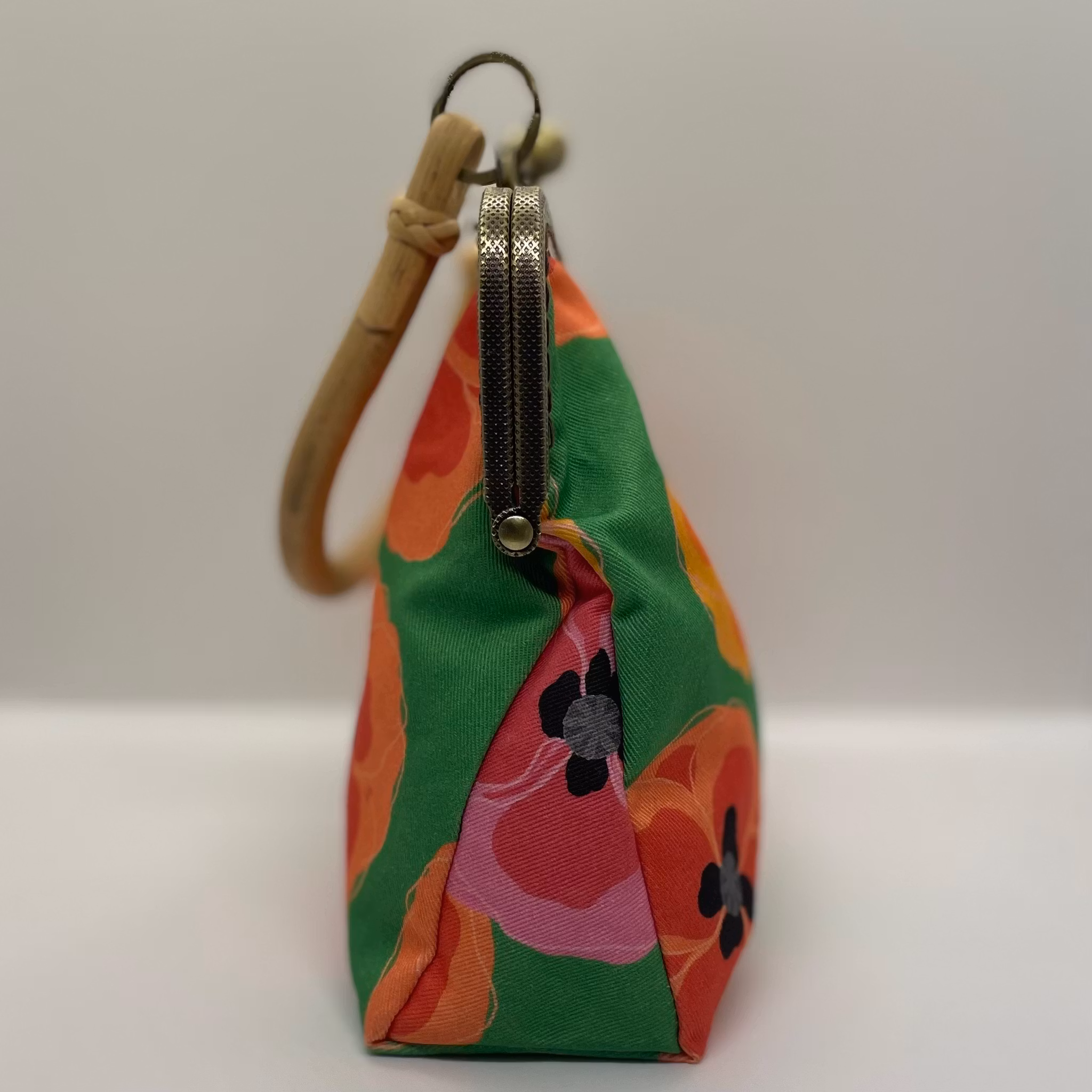 necessär med bambuhandtag i mönstret bonanziga vallmos på grönt
