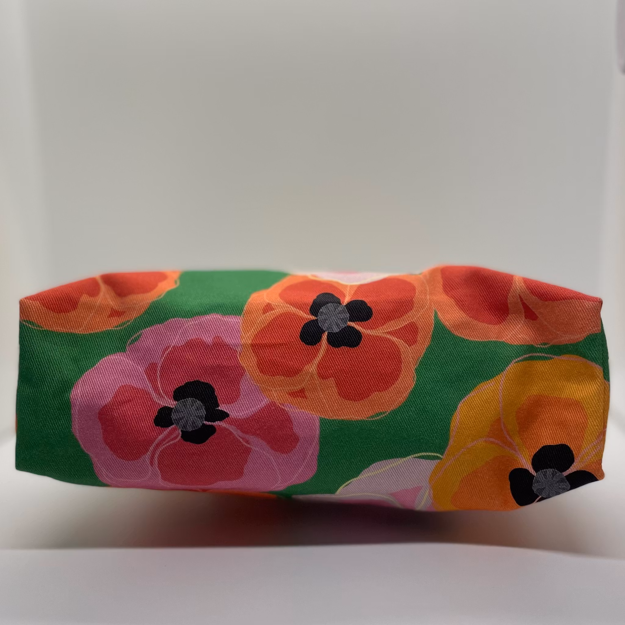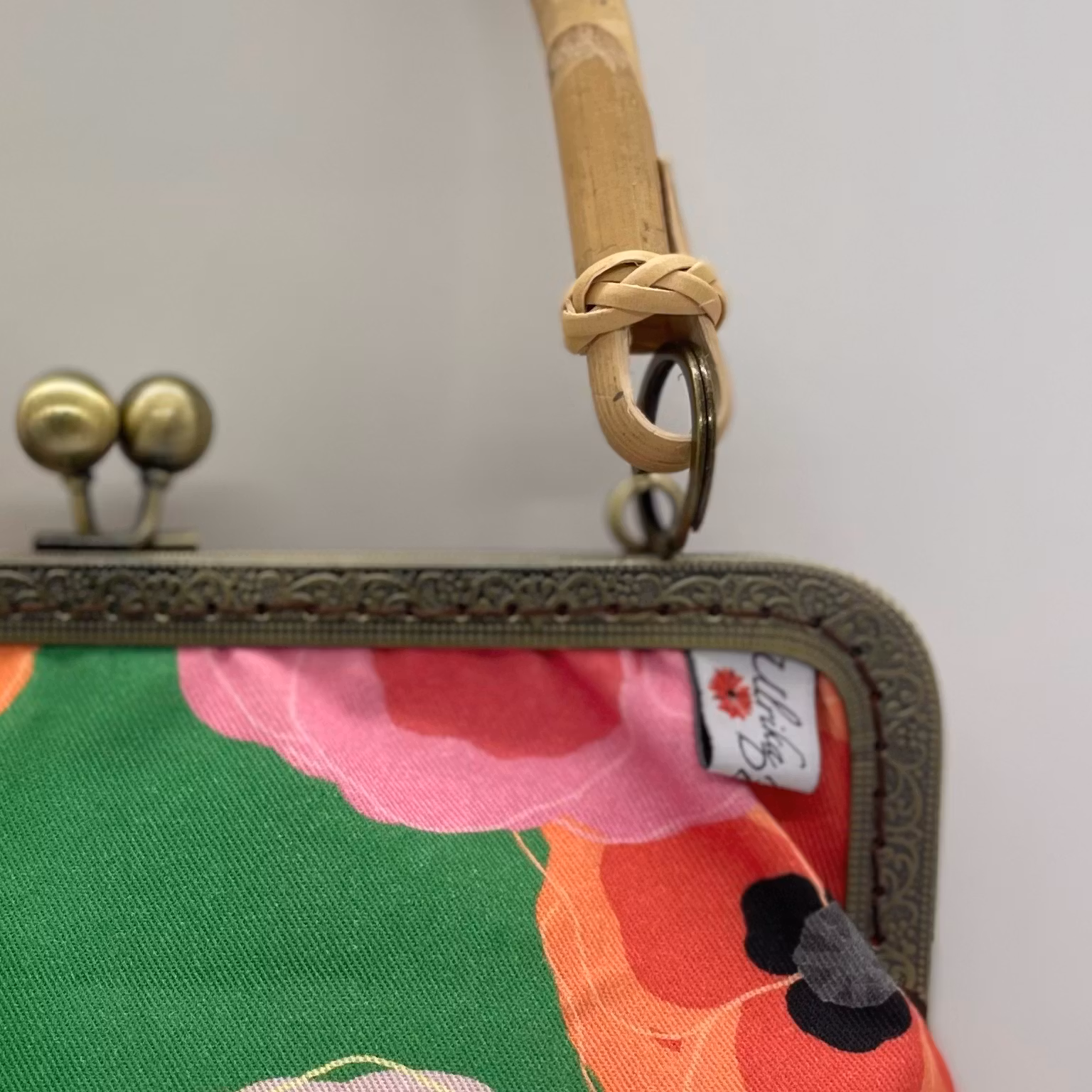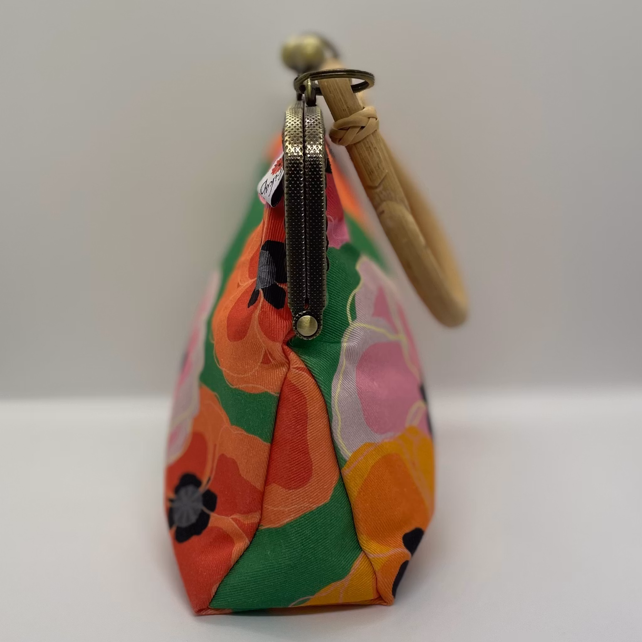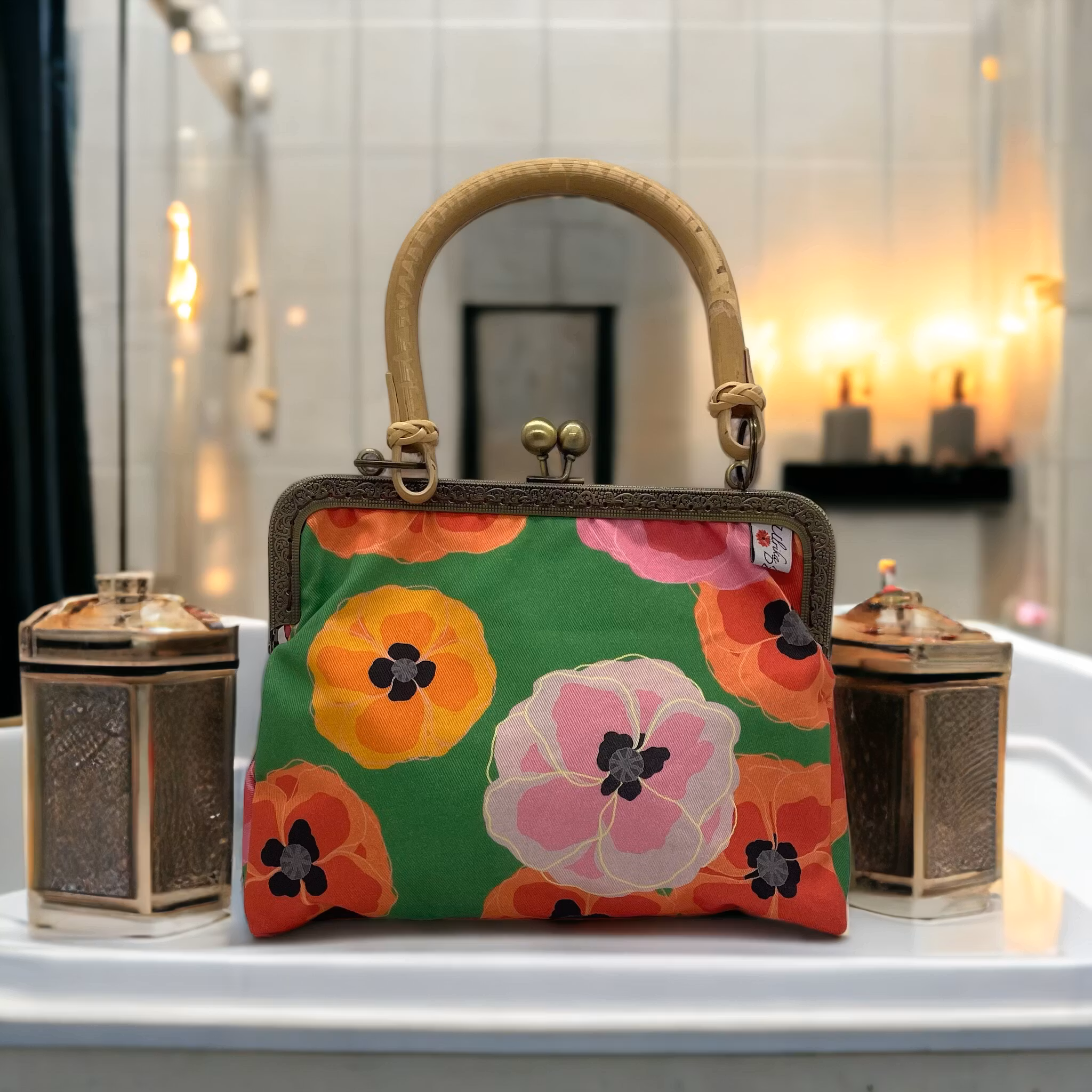 necessär med bambuhandtag i mönstret bonanziga vallmos på grönt