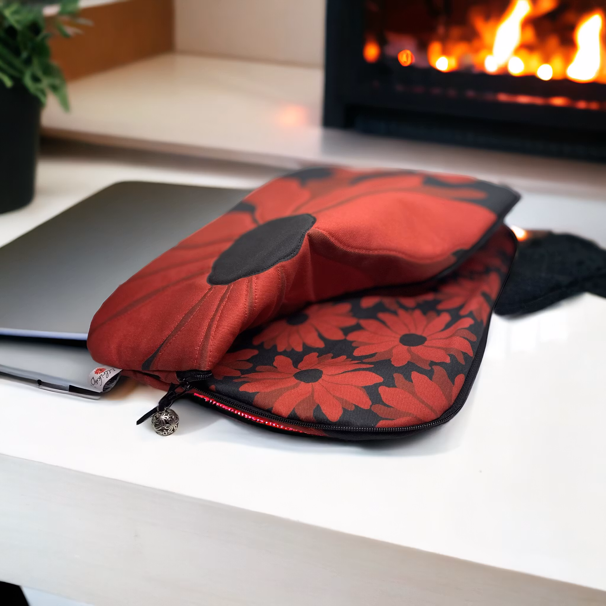 Beställningsvara! Min modell av laptopfodral mäter cirka 35 cm på bredden och 25 cm på höjden. Jag syr fodralet i rejäl bomullstwill av god kvalitet, 240 g/m2 eller 265 g/m2 varav det senare även innehåller 3 % elastan. Vilken twill jag syr i beror på vilket tryckeri jag anlitar för att trycka det mönster just du väljer. Även fodertyget sys i twill, för extra stadga och tålighet. För att på bästa sätt skydda din laptop, quiltar jag fast plattvadd eller hobbypolyester i yttertyget, beroende på vad jag har hemma. Just för tillfället använder jag gärna oeko-tex standard 100 hobbypolyester, då den är litet nättare än plattvadden. Jag hade turen att hitta två oöppnade förpackningar på loppis och du som känner till mitt miljötänk, vet att jag är nöjd när jag kan återvinna och ta tillvara.