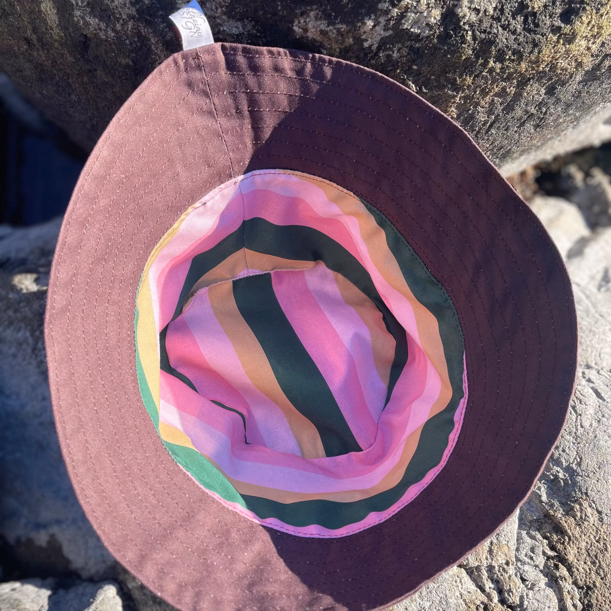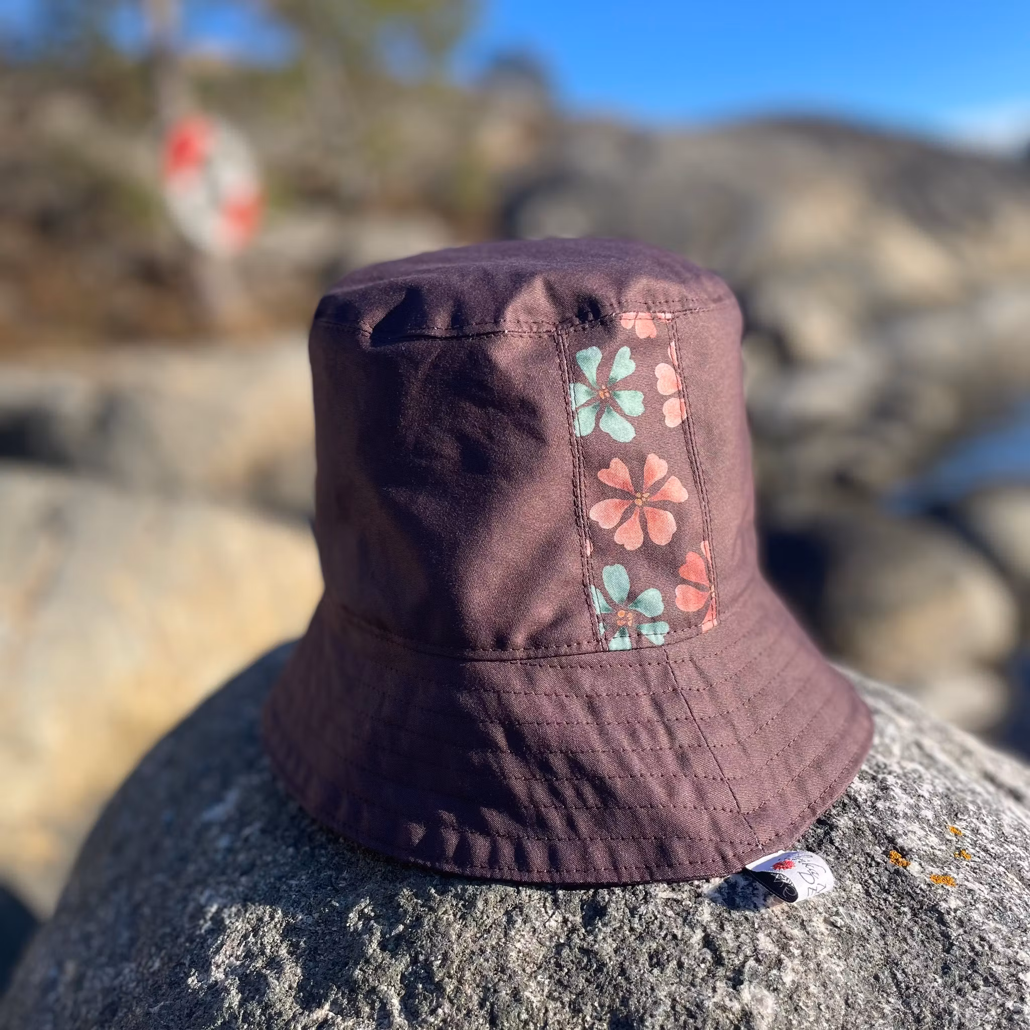 Material och storlek: Hatten är sydd av min canvas (185 g/m2) och passar dig som mäter 58 cm kring huvudets bredaste ställe. Den kan även passa dig med ett något mindre huvud, om du trivs bäst med en lösare passform på din hatt. Fodret i hattens kulle är sytt av ett av mig designat randigt mönster i min GOTS-certifierade percale. (156 g/m2) Hatten är sydd utan mellanlägg och känns mjuk och sval på huvudet.