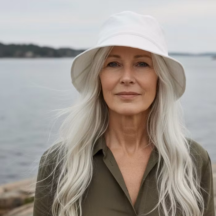 Material och storlek: Hatten är sydd av min canvas (185 g/m2) och passar dig som mäter 58 cm kring huvudets bredaste ställe. Den kan även passa dig med ett något mindre huvud, om du trivs bäst med en lösare passform på din hatt. Fodret i hattens kulle är sytt av vit GOTS-certifierat bomullspoplin. (130 g/m2) Hatten är sydd utan mellanlägg och känns mjuk och sval på huvudet.