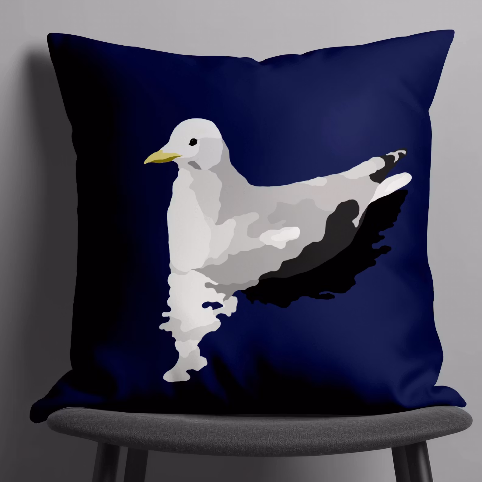 En mås som jag en gång målade och sålde prints av, här på kuddfodral! Som man ofta kan se dem härute i skärgården, liggande i sjön, i solen, väntande..