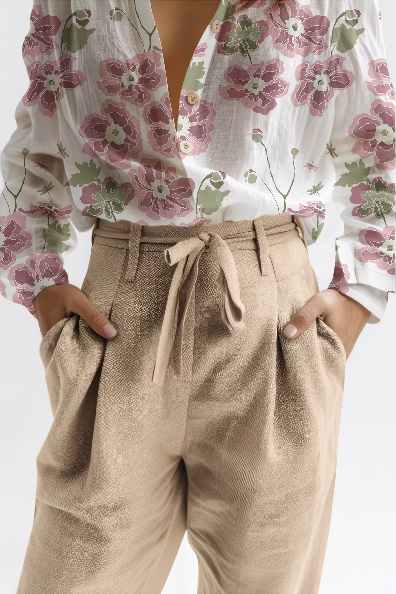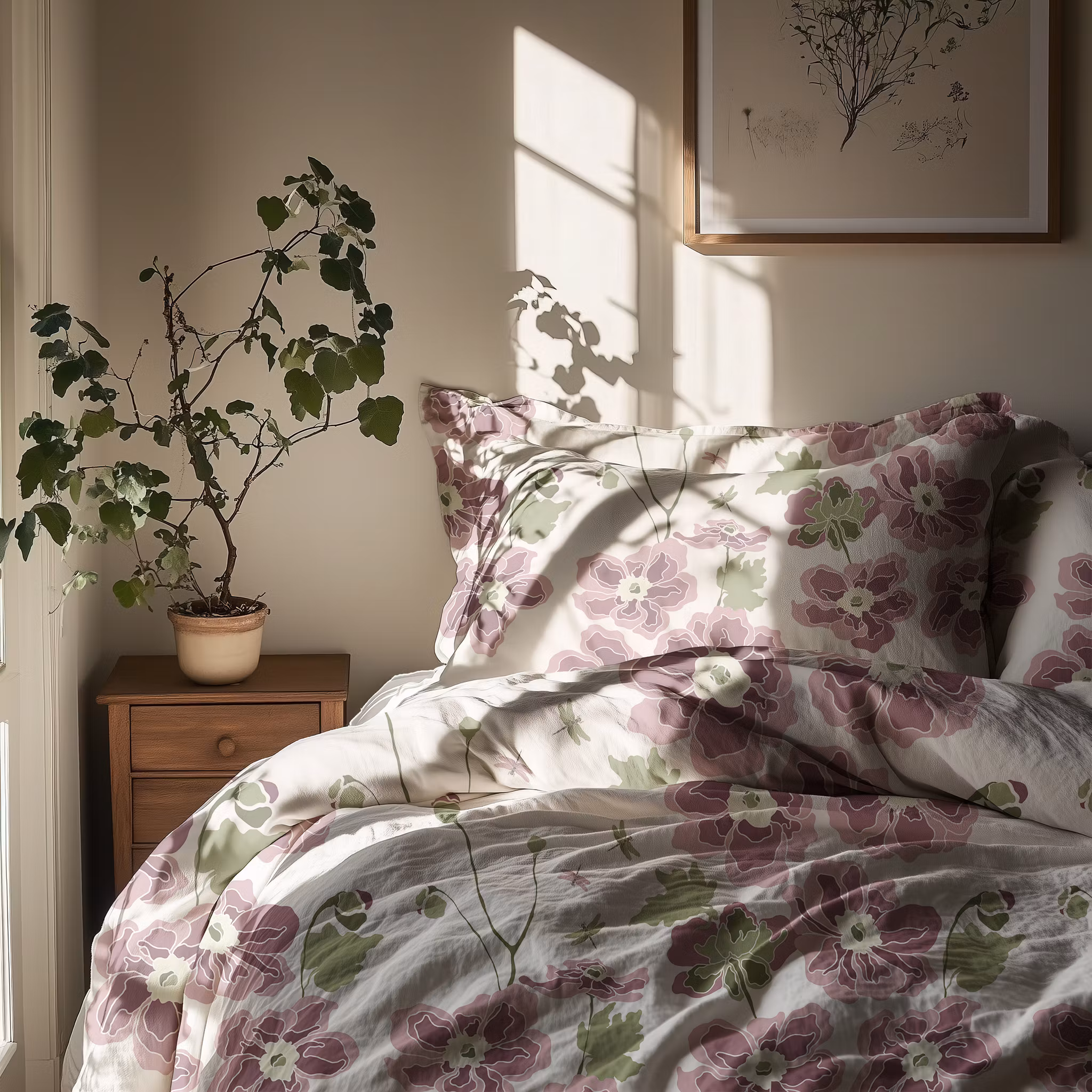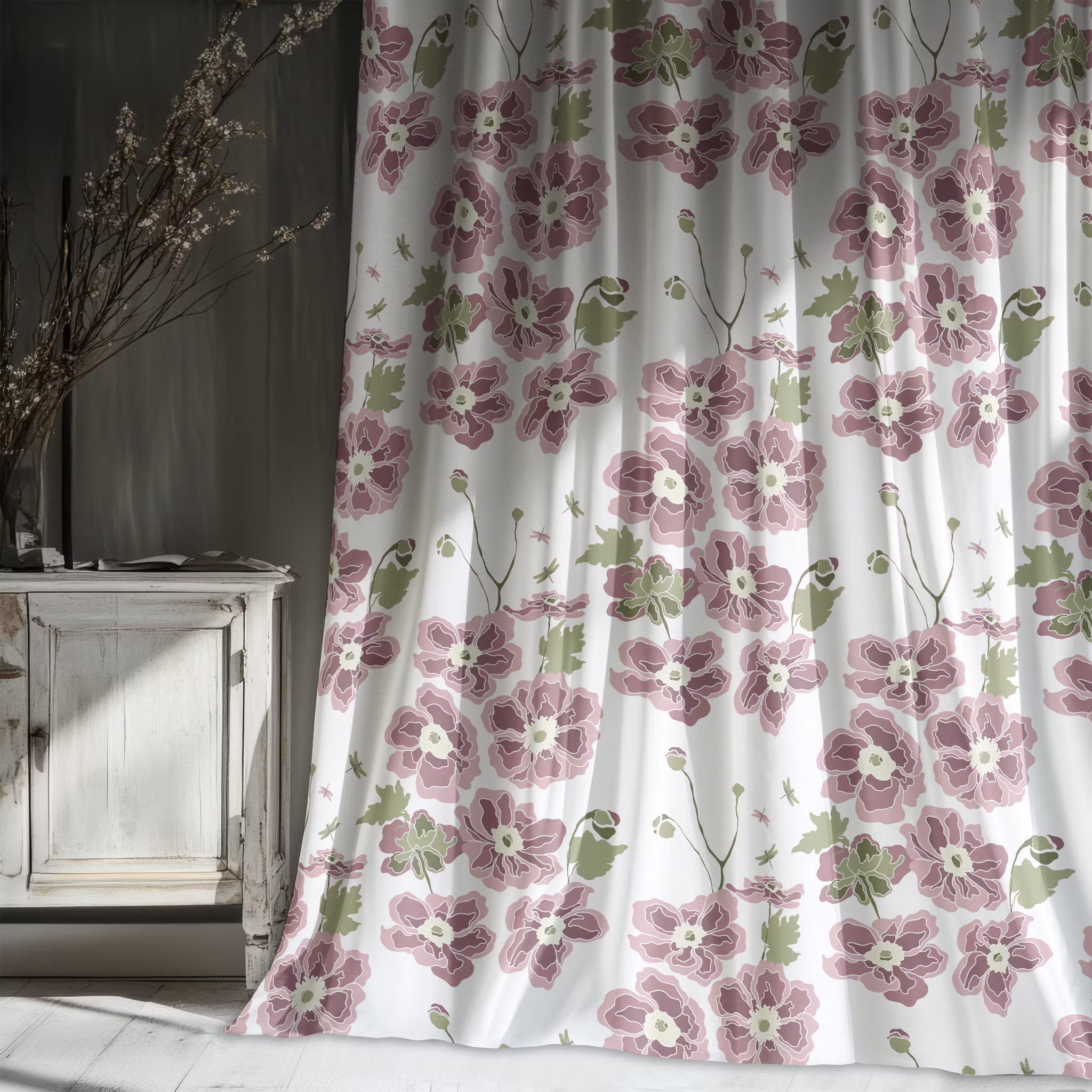 Anemona, höstanemoner på vit bomull
