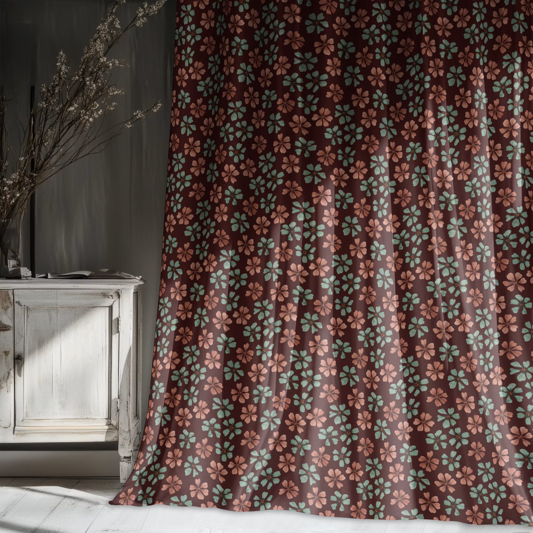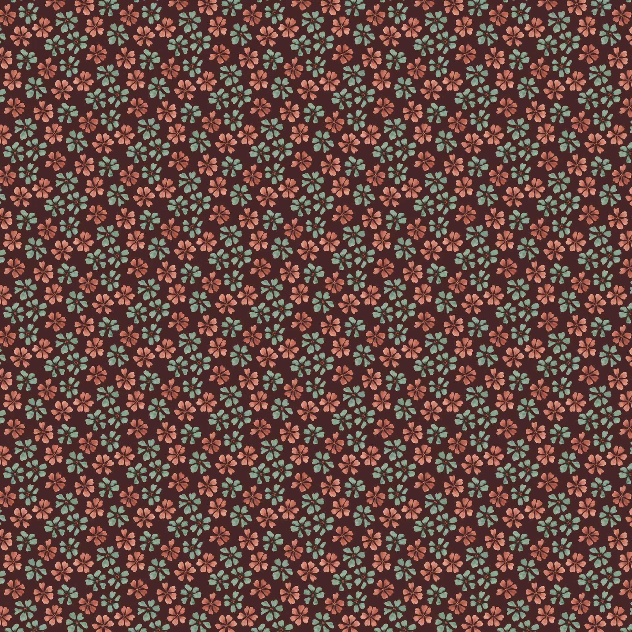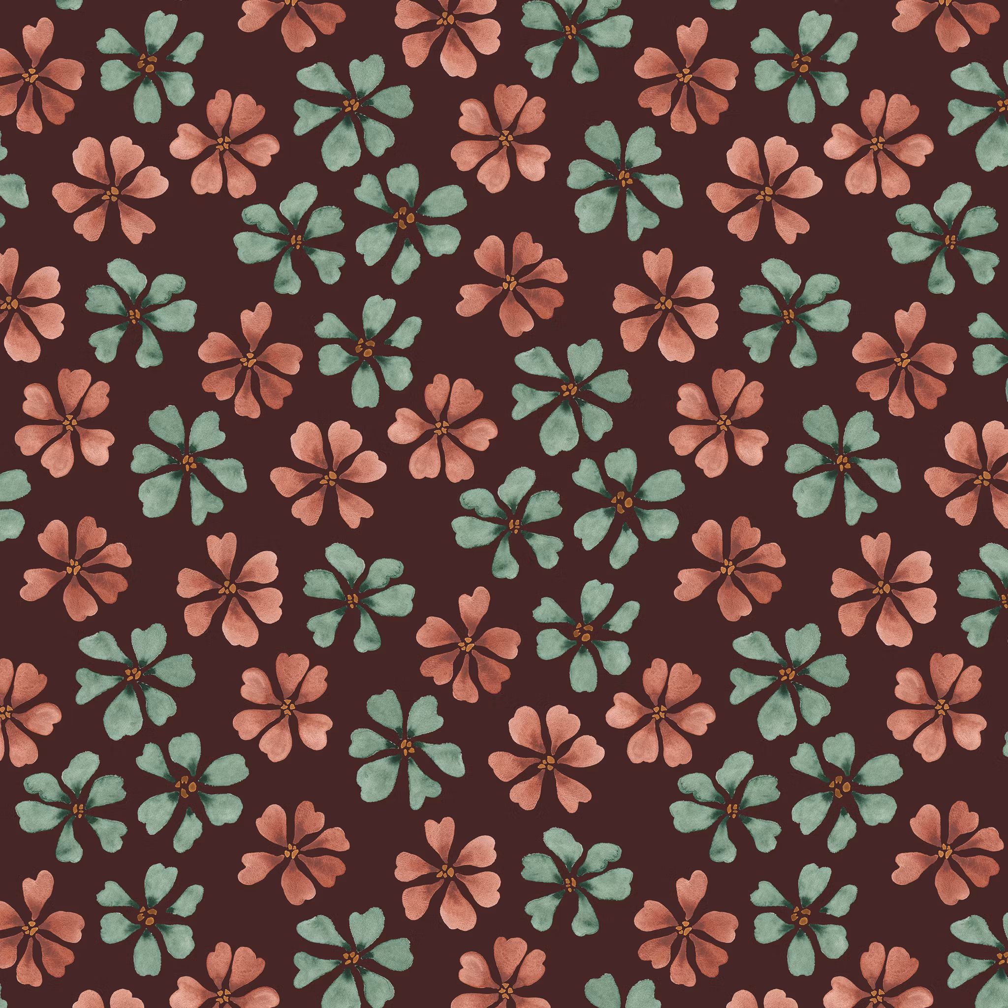 Bliss! Akvarellmålade blommor på brunröd bomull