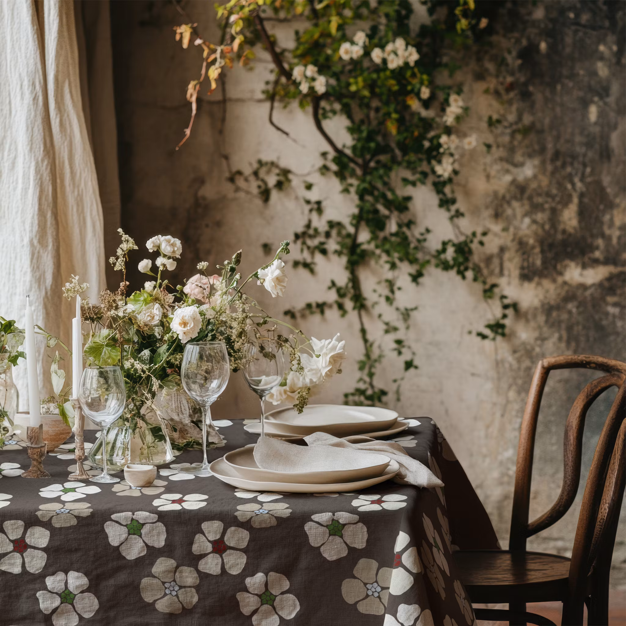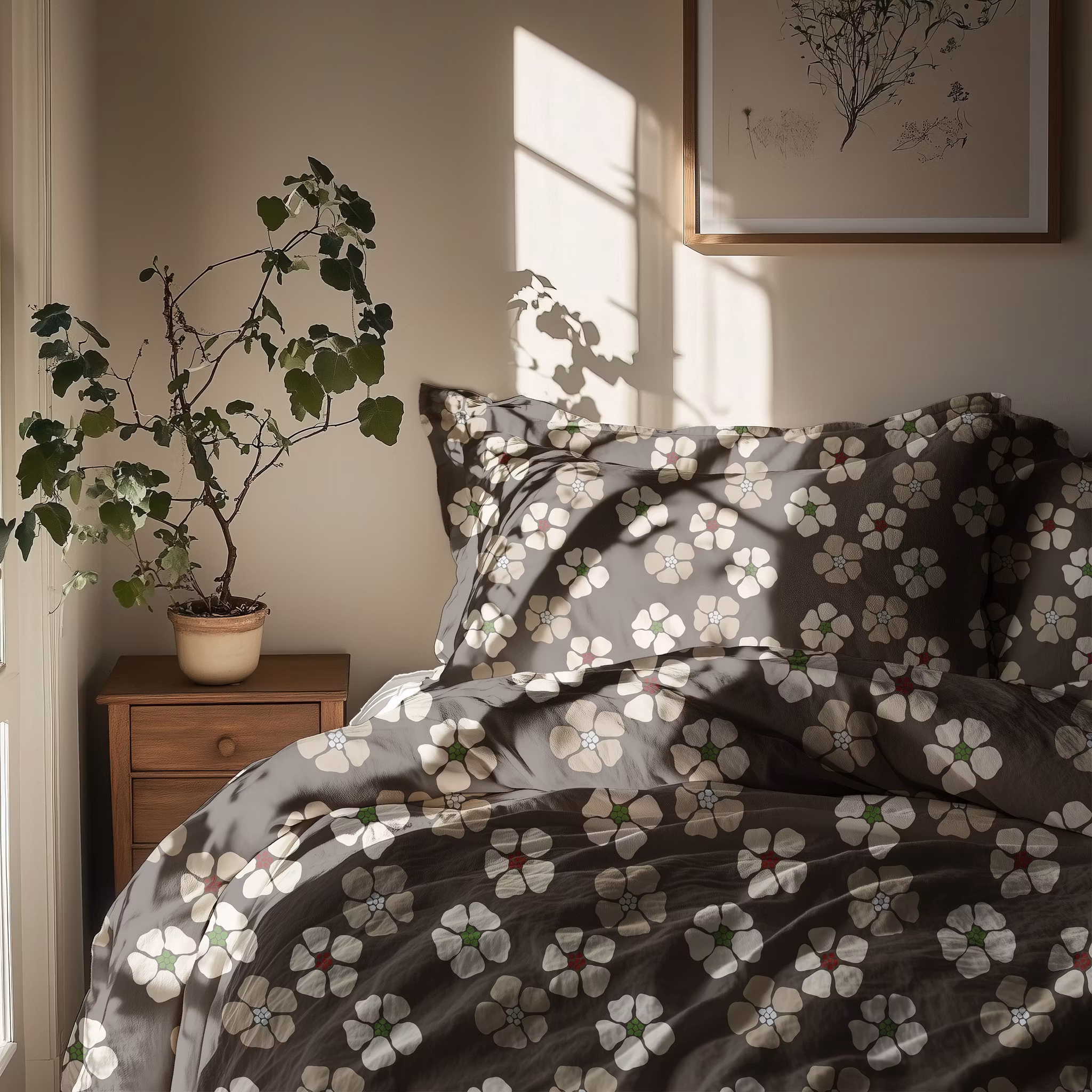 Dille, lek med vallmons former på mockafärgad bomull