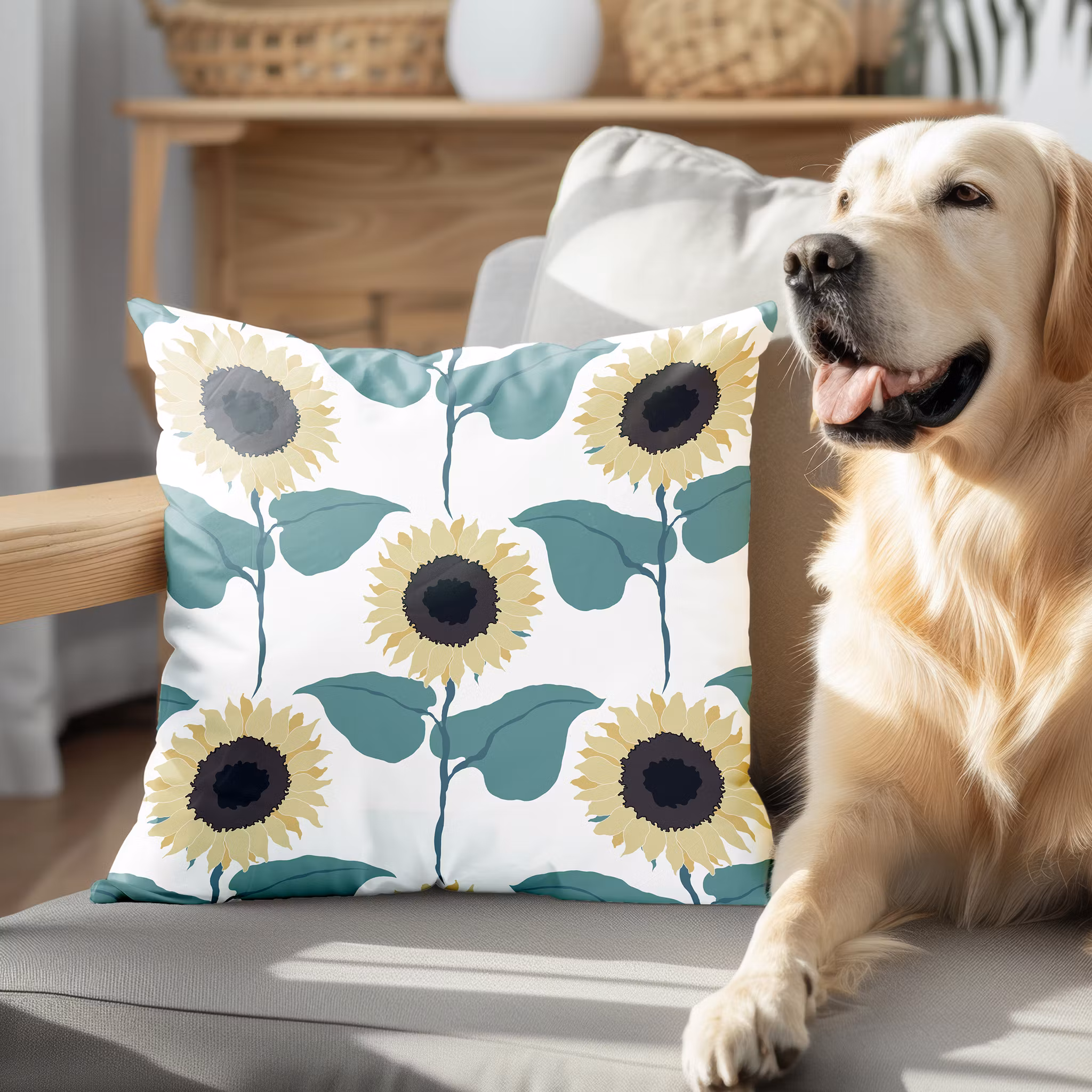 Min dotters favoritblomma, här på vit. Stolt, vacker och stark, som min Lovis! Solrosorna står som på givakt vända mot solen, precis så som de växer. Här har jag valt lite vintage-, mjuka pasteller på själva solrosen.