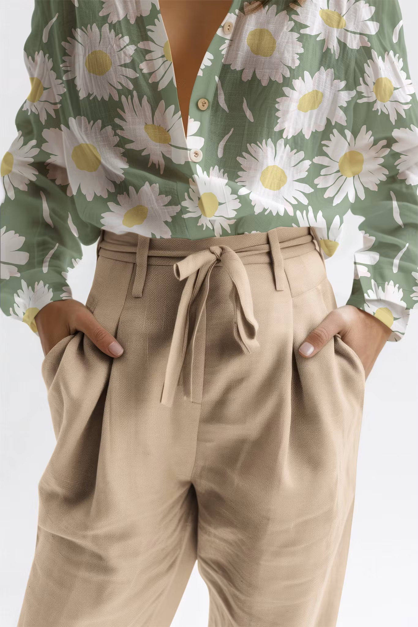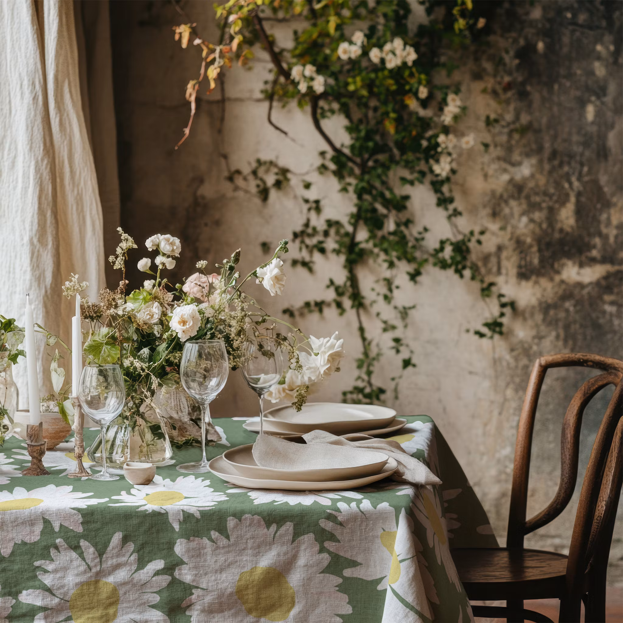 Anna, prästkragar på grön bomull
