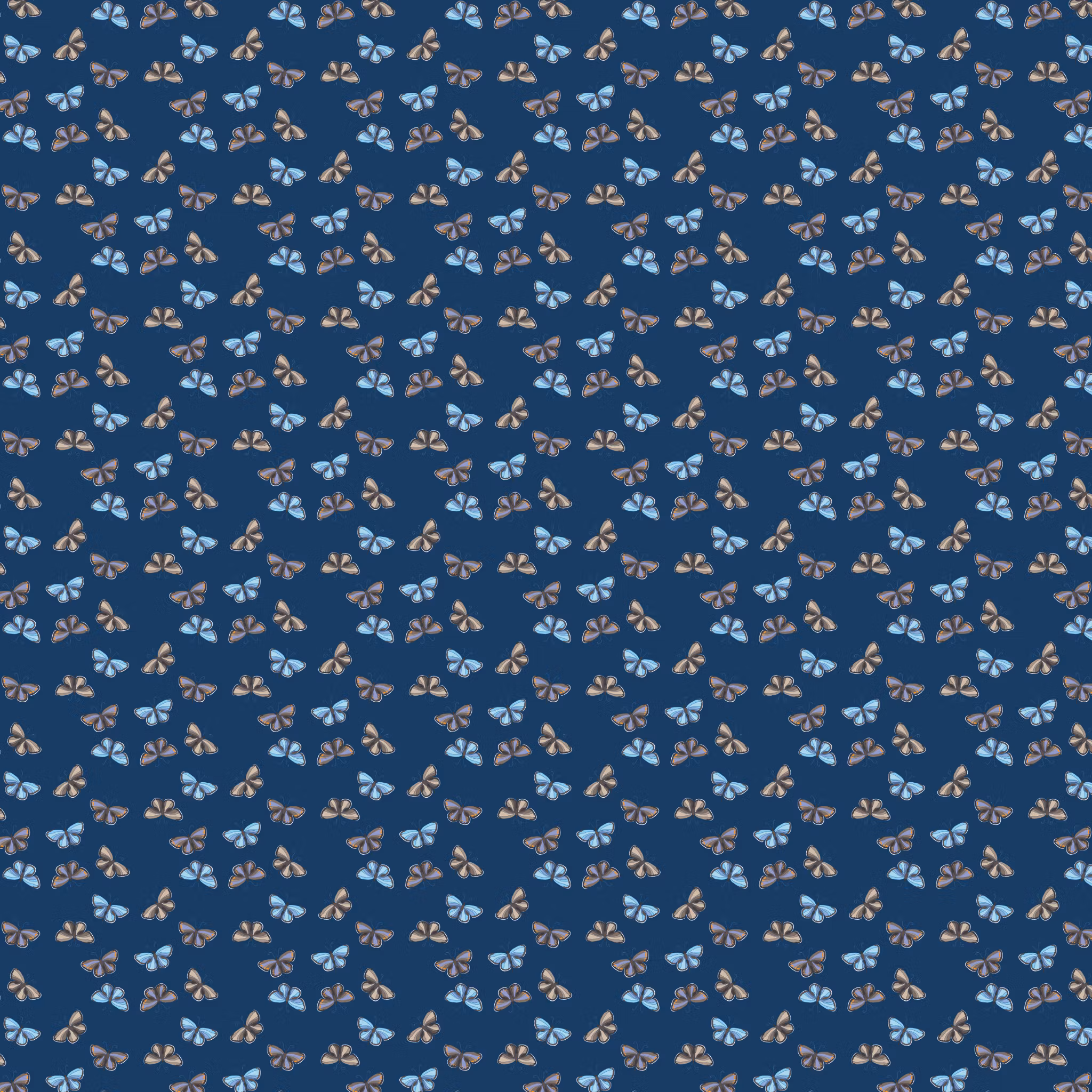 Flygande blåvingar på blå bomull