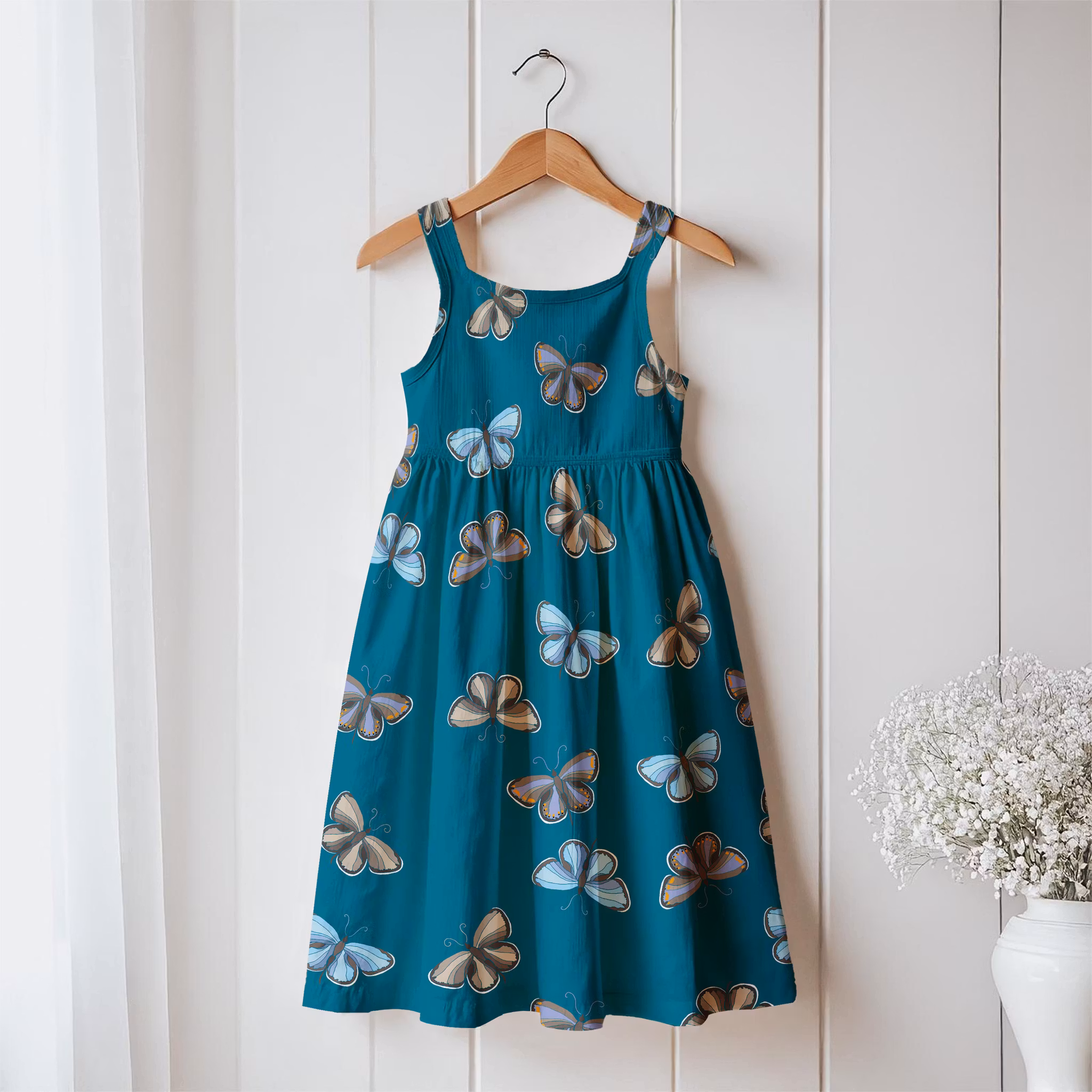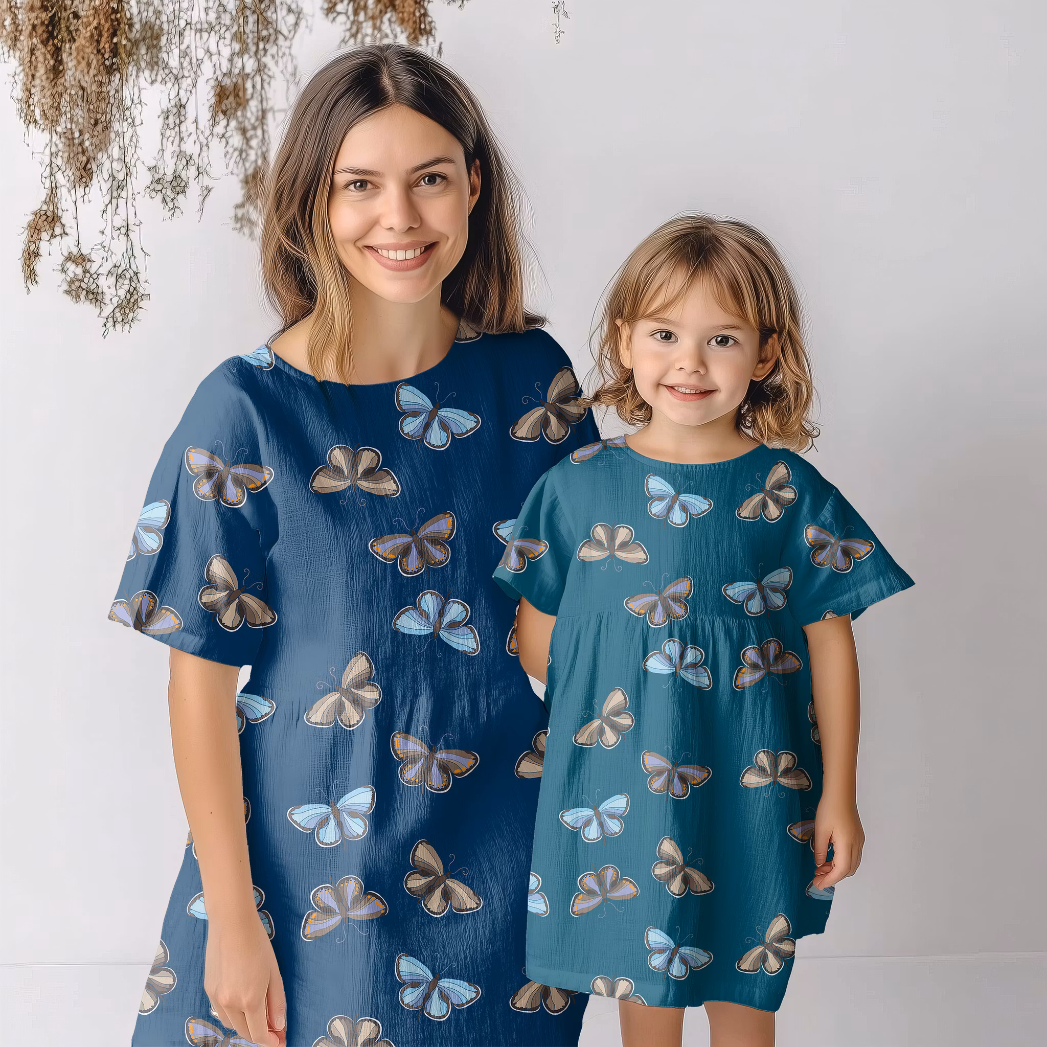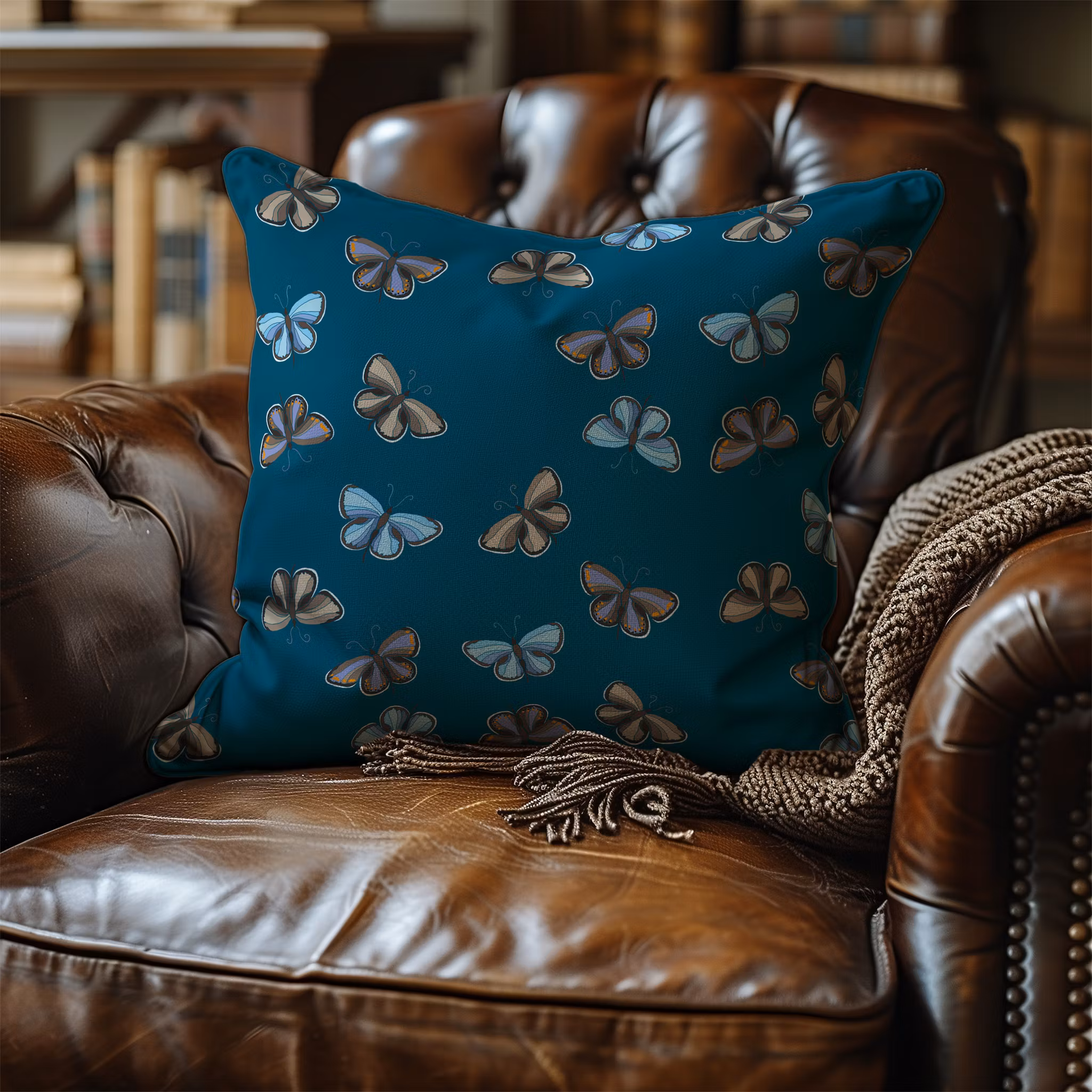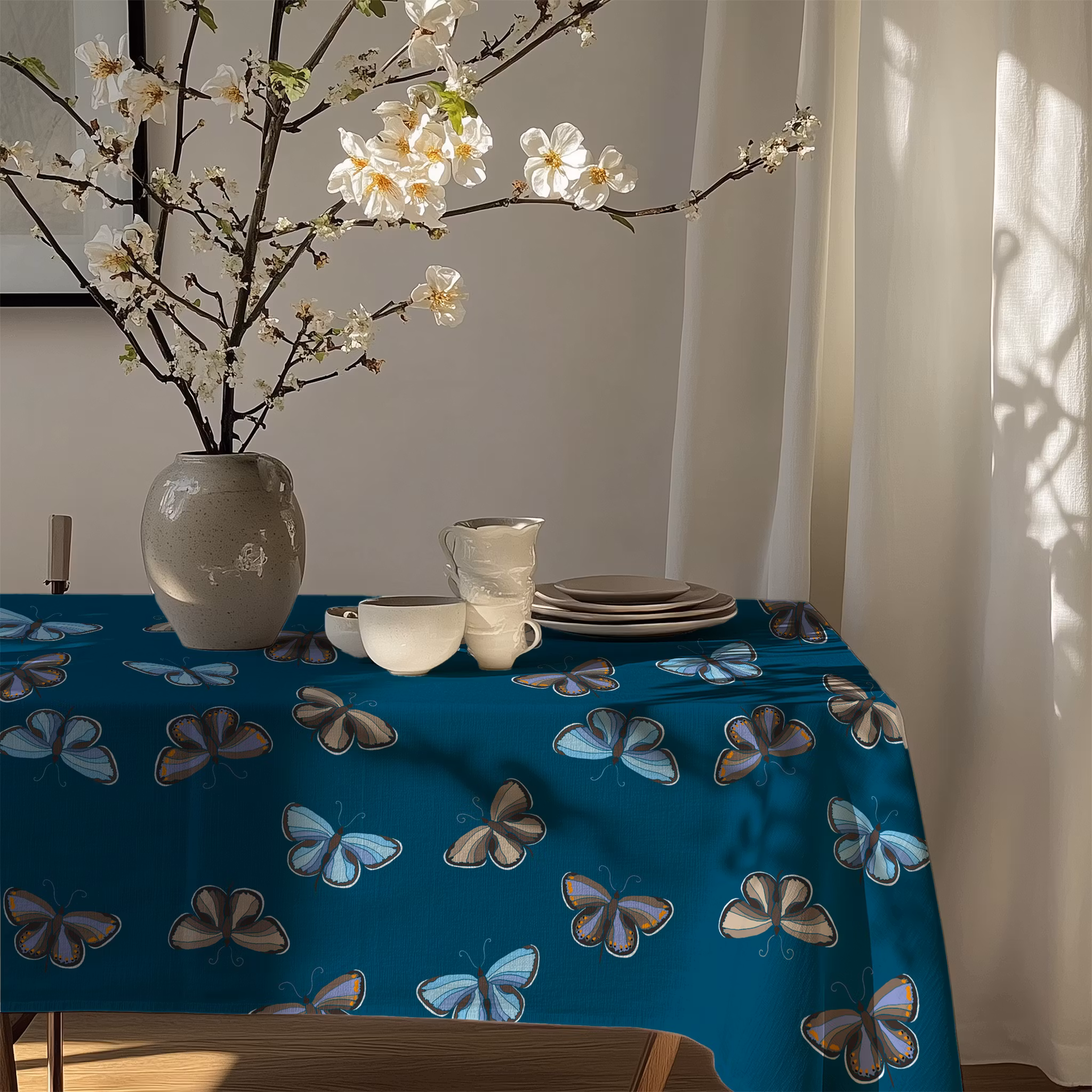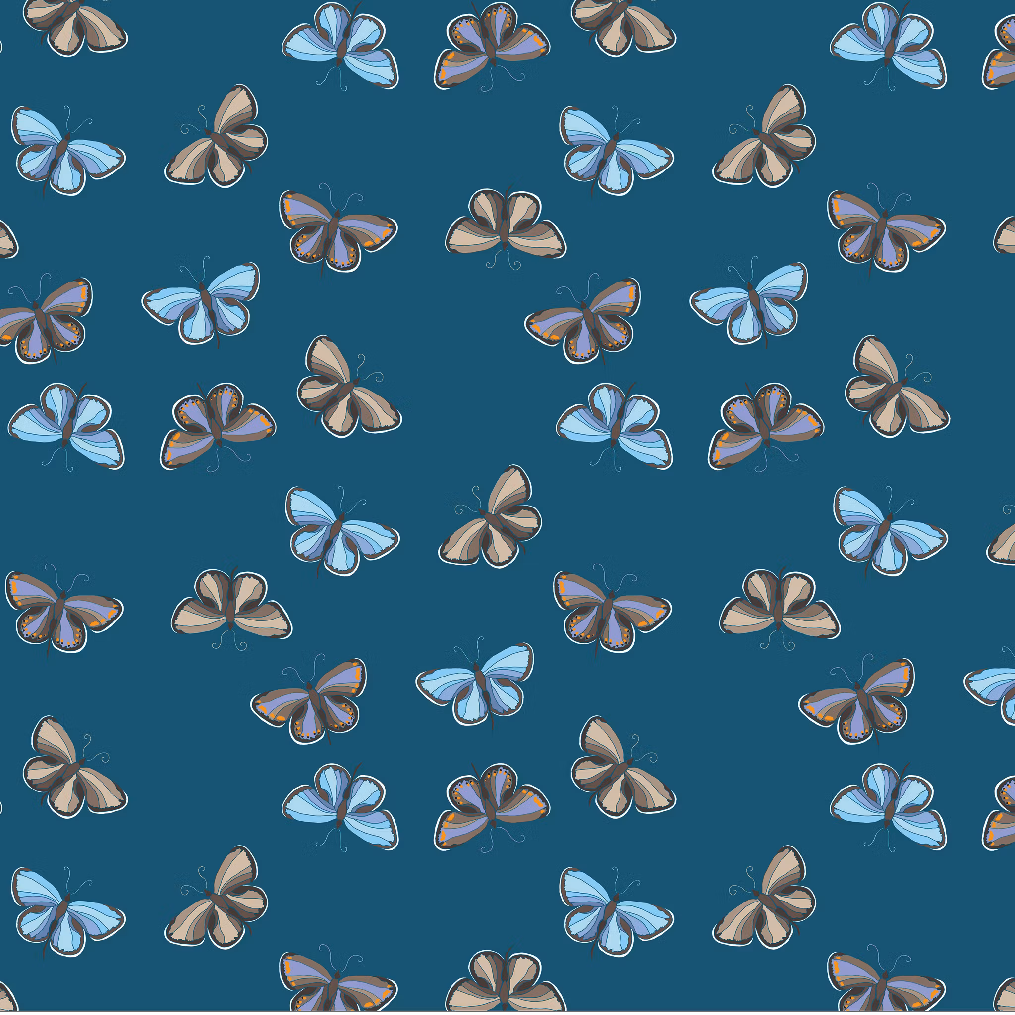 Flygande blåvingar på petrolfärgad bomull