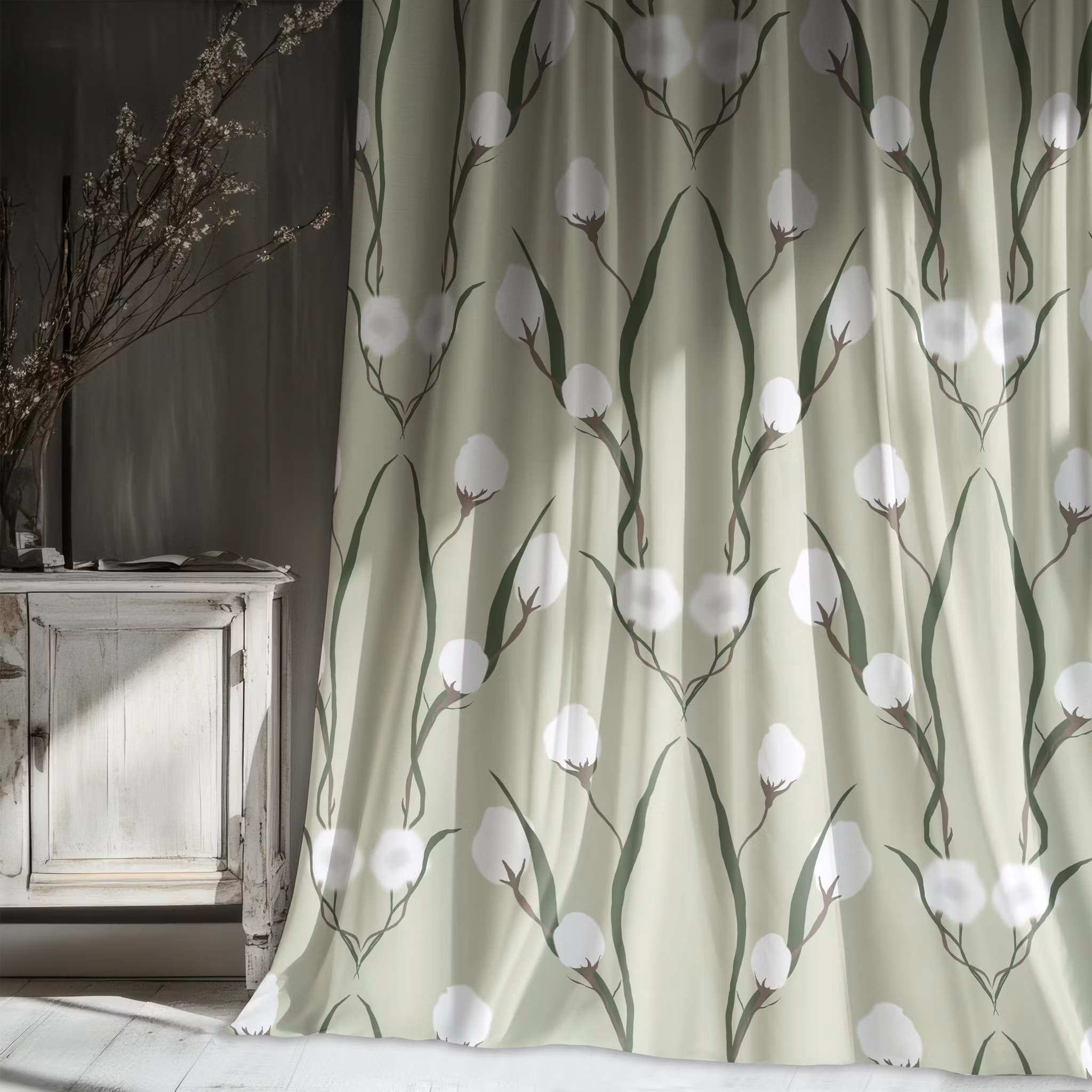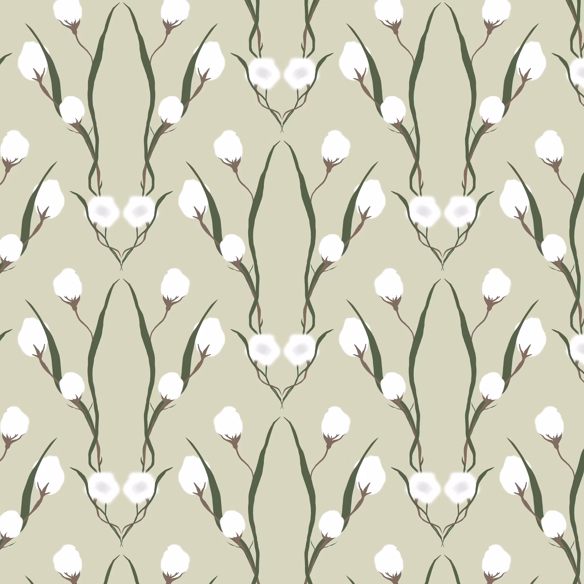 Cotton grass, med ängsull på salviagrön bomull