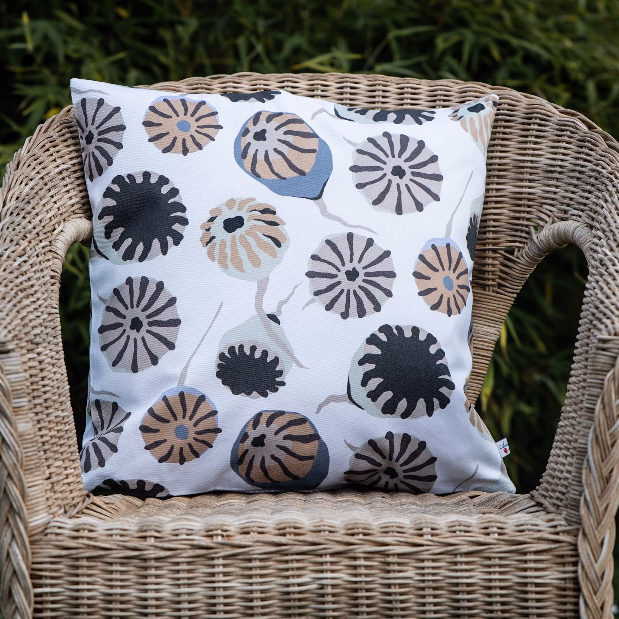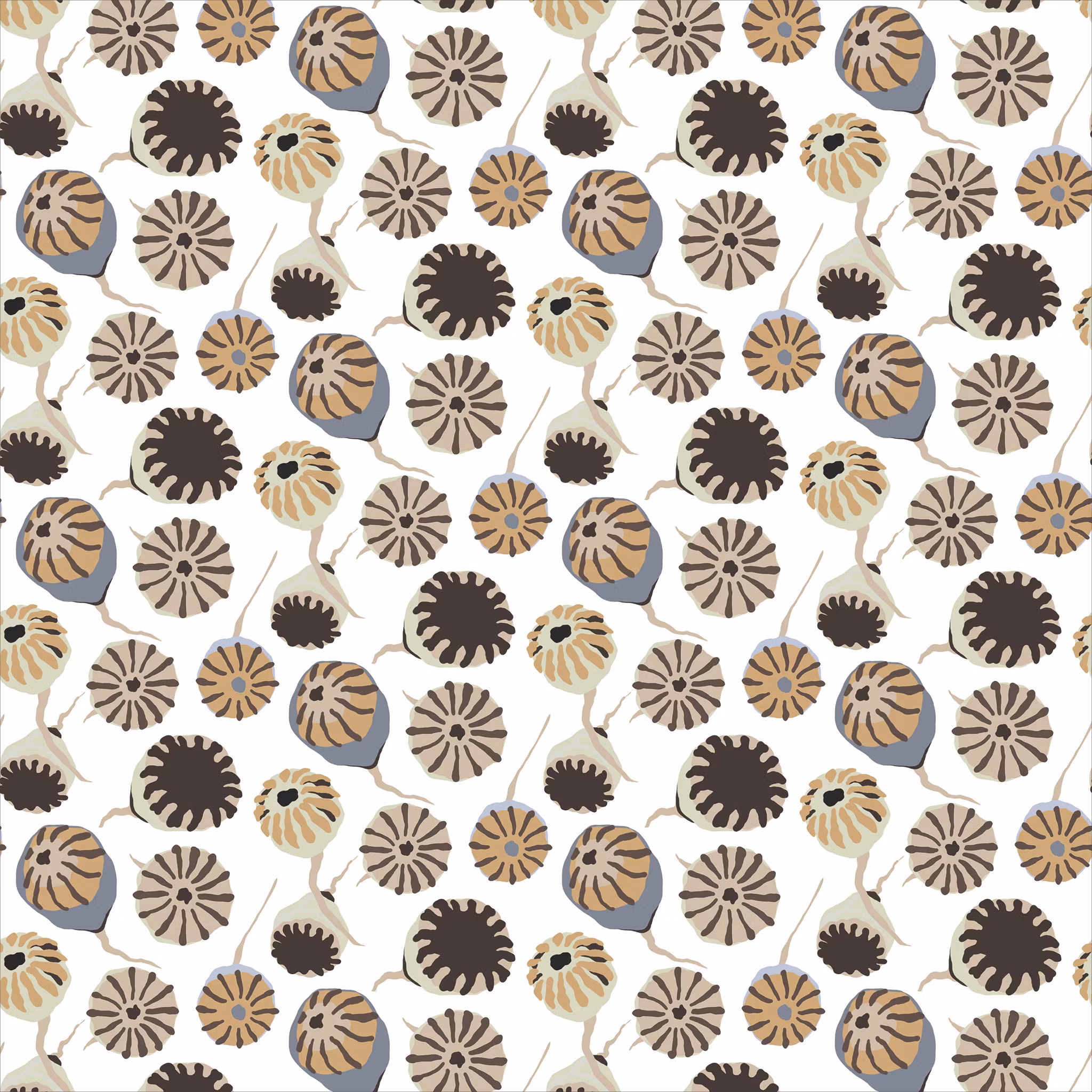 Jag avbildade de frökapslar av rågvallmo som jag plockade och torkade från sädesfältens dikeskanter när jag besökte en vän på Gotland en sommar. De blev så vackra och jag var bara tvungen att avbilda- och göra mönster av dem! Den vita färgställningen är somrigt fräsch och lättmatchad!