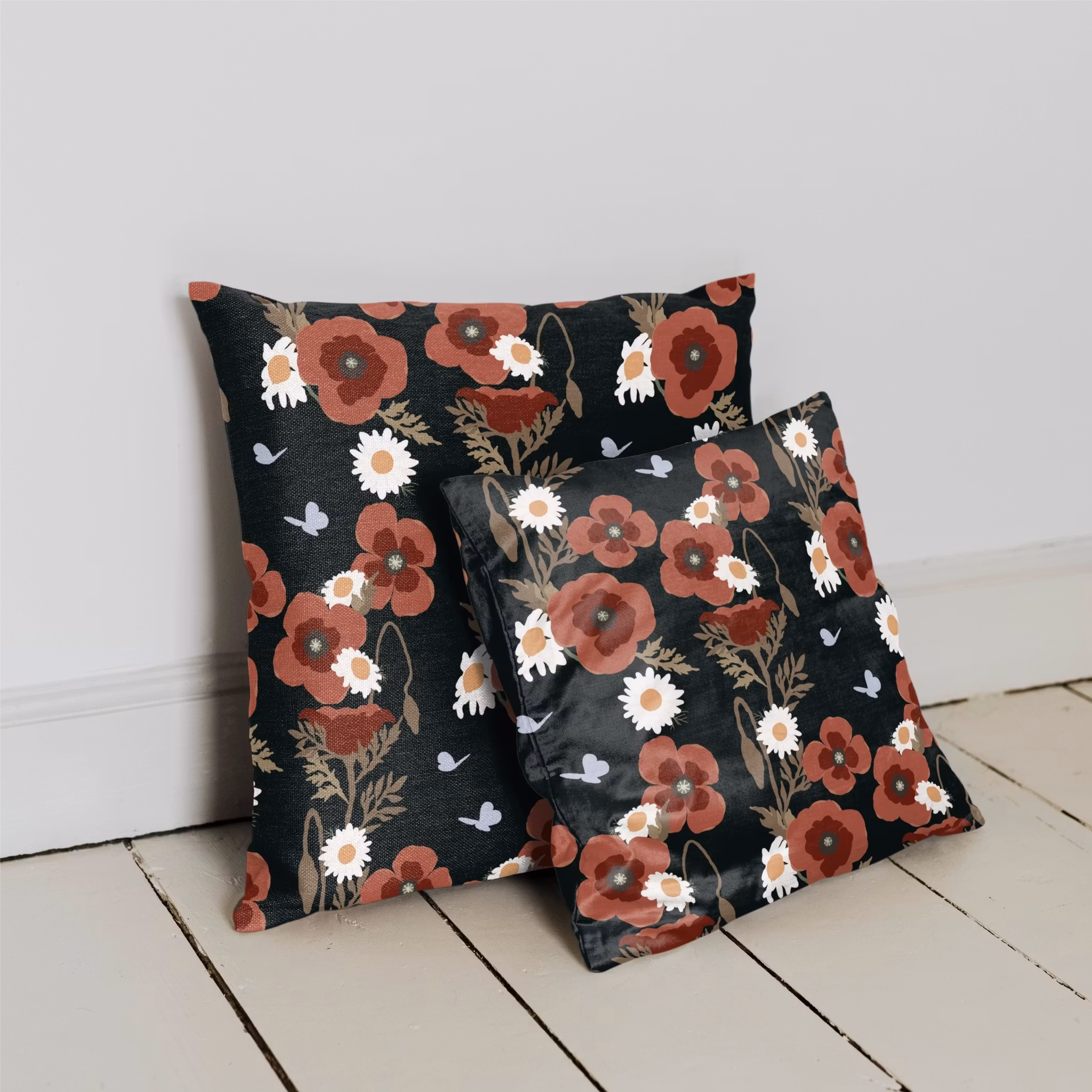 Svea, Västergötlands rågvallmo och baldersbrå på svart bomull