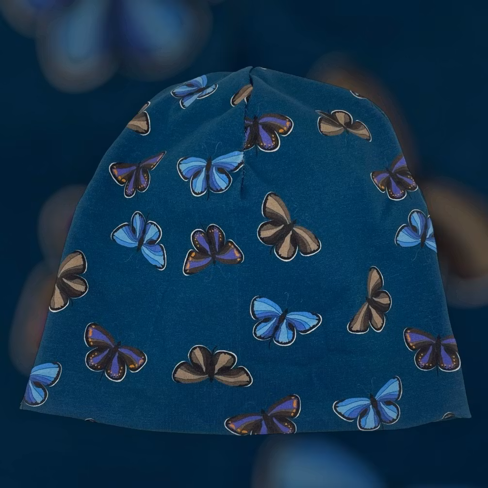 Jag tyckte mönstret passade på en liten babymössa, våra ömtåliga blåvingar! Fjärilar som vi behöver vara särskilt rädda om.