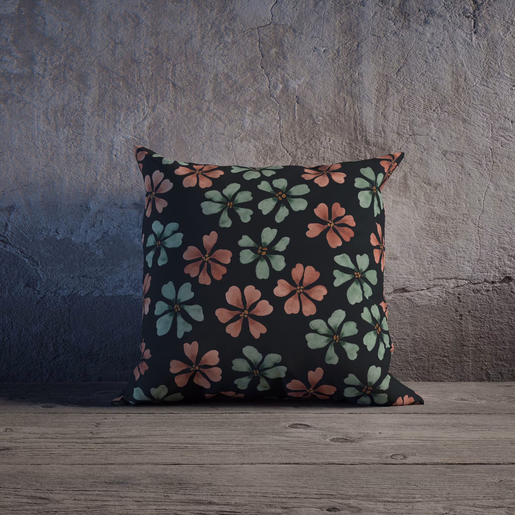 Bliss! Akvarellmålade blommor på svart kuddfodral