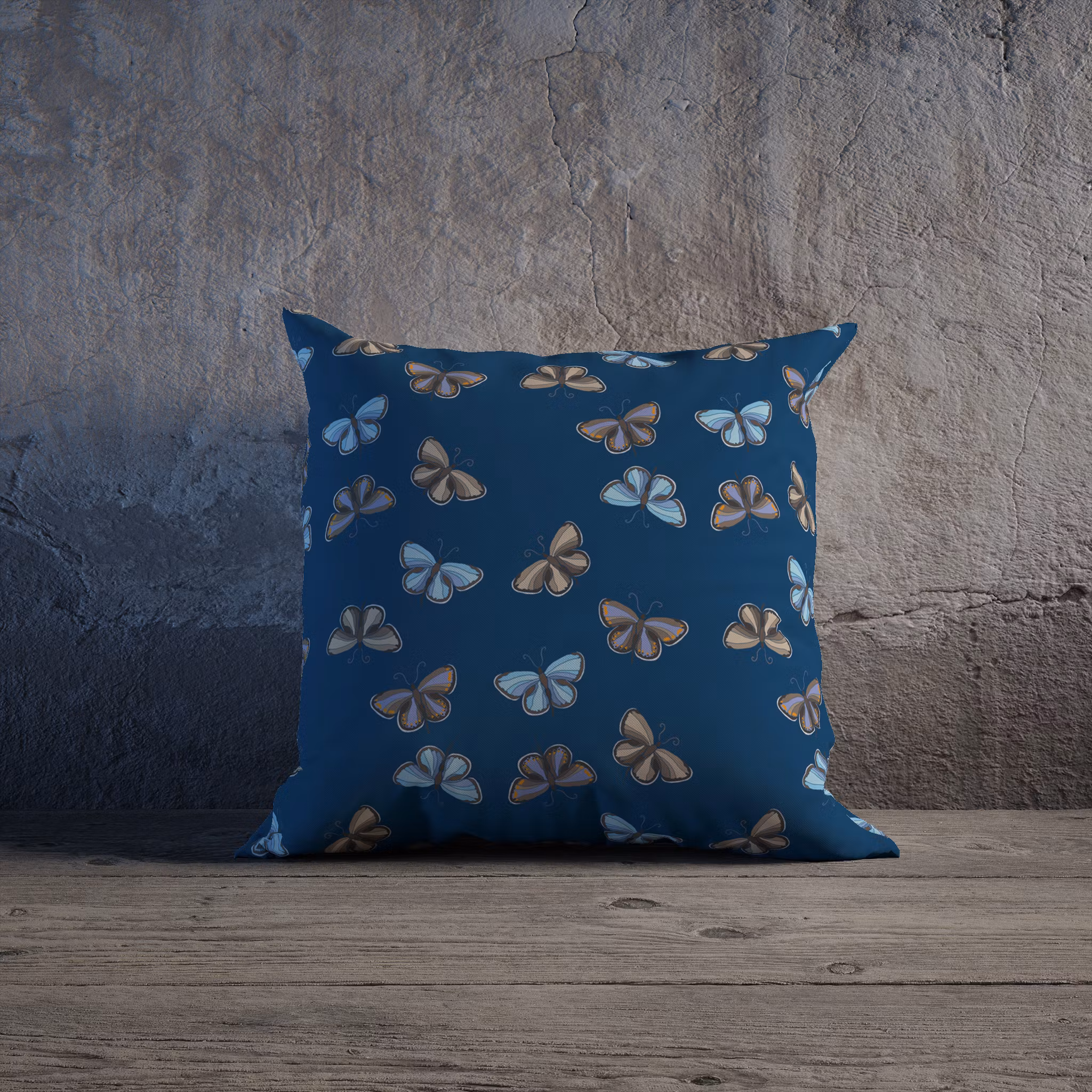 Flygande blåvingar på blått kuddfodral