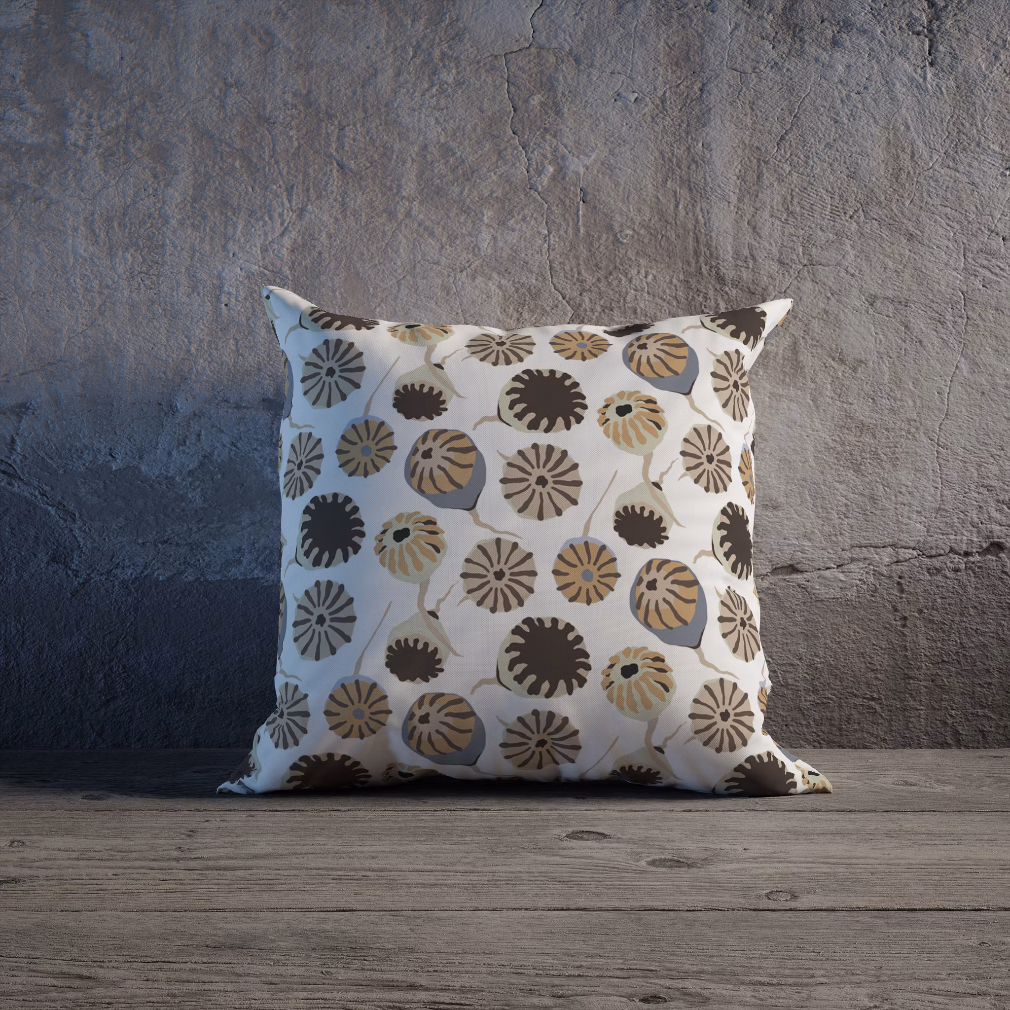 Jag avbildade de frökapslar av rågvallmo som jag plockade och torkade från sädesfältens dikeskanter när jag besökte en vän på Gotland en sommar. De blev så vackra och jag var bara tvungen att avbilda- och göra mönster av dem!