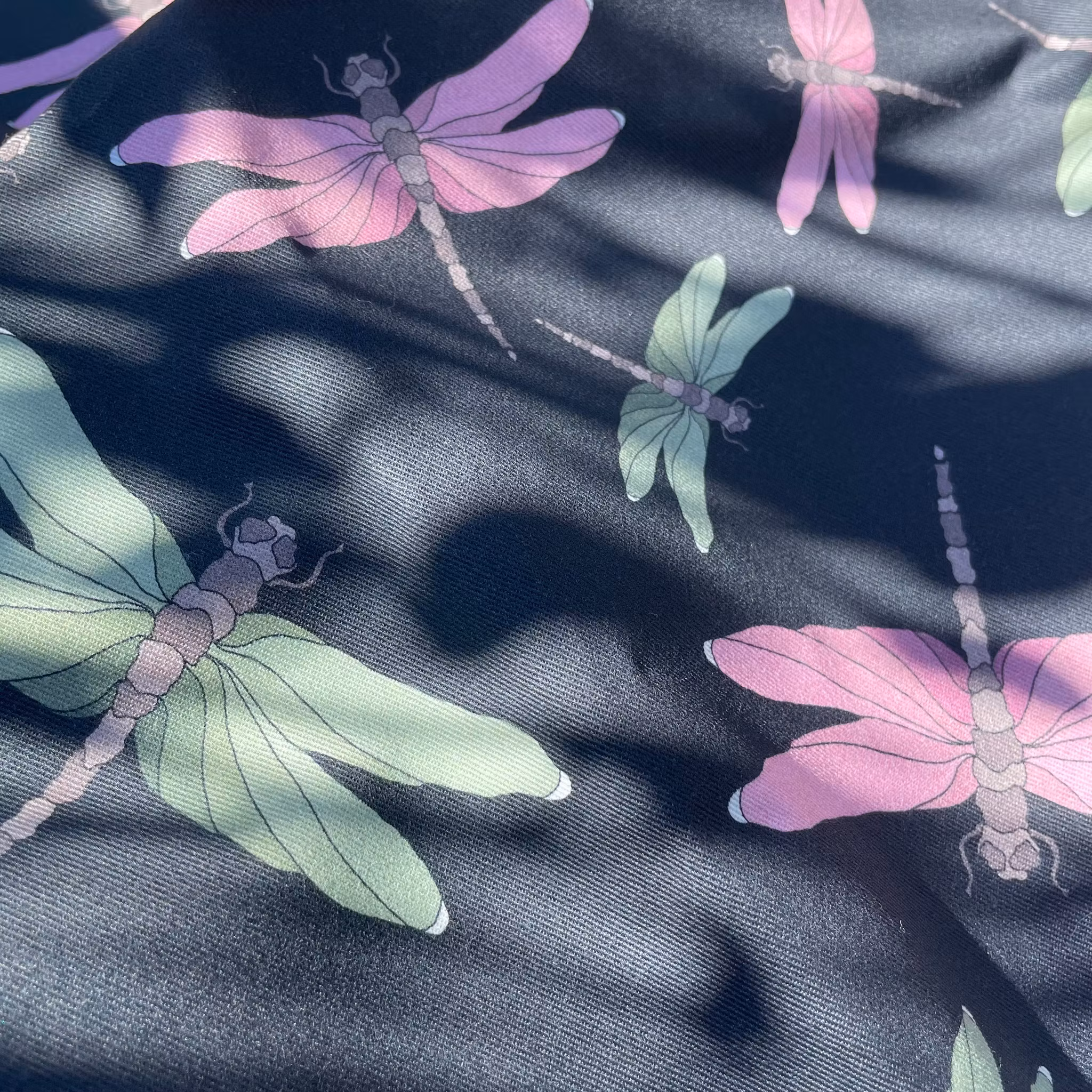 Maarit, trollsländor på svart kuddfodral