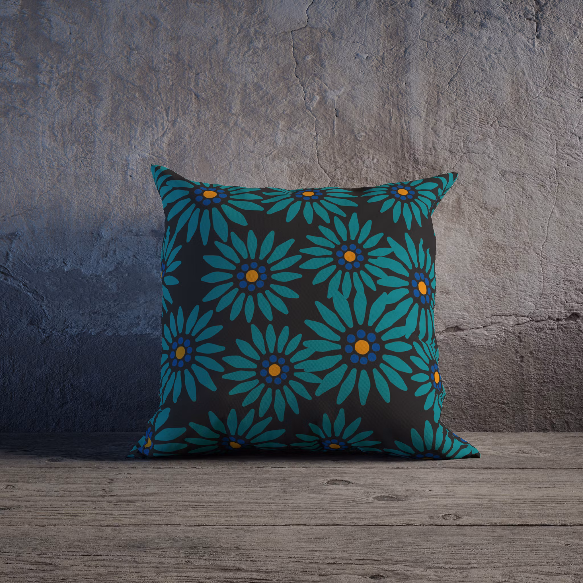 Mediterranean meadow, mitt medelhavsinspirerade mönster på svart kuddfodral