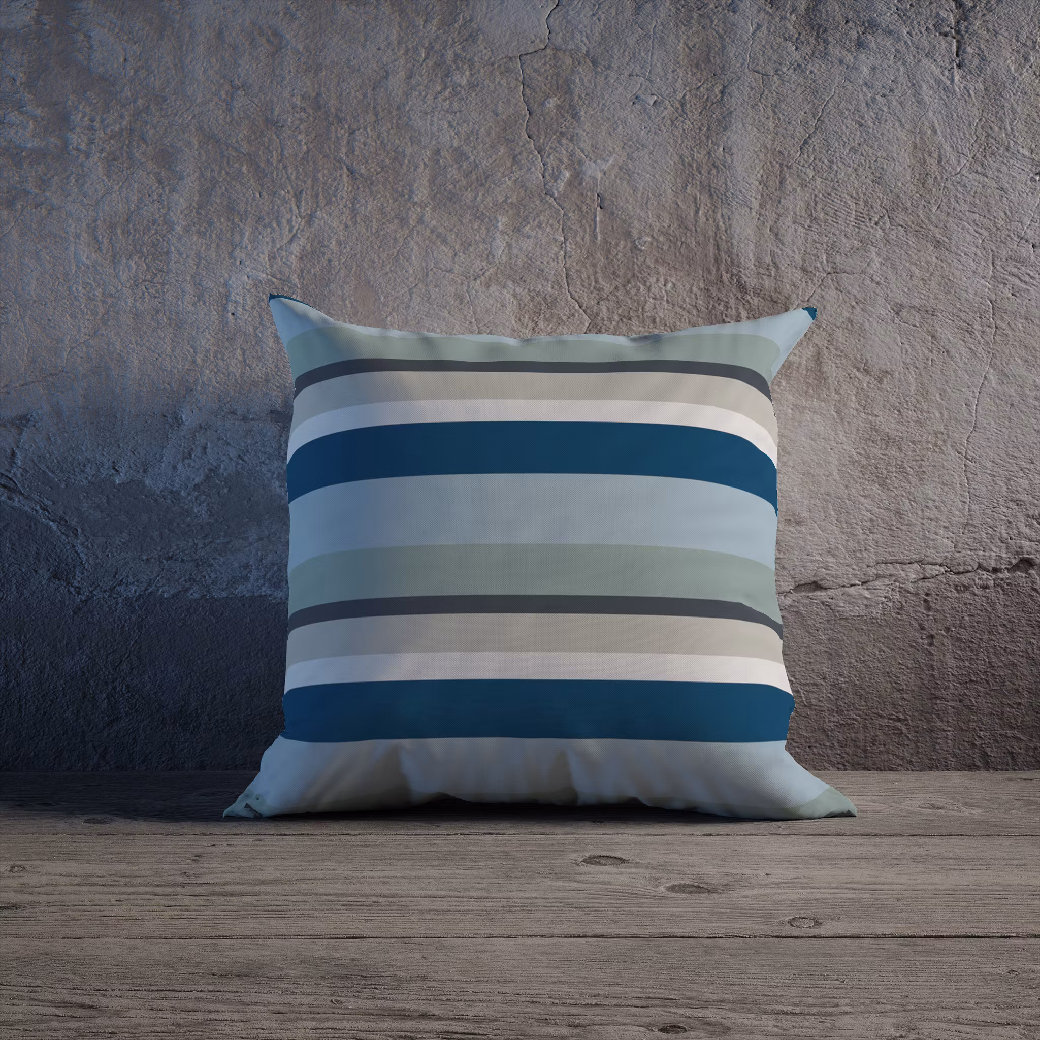 Stenstranden, mitt skärgårdsinspirerade mönster på randigt kuddfodral
