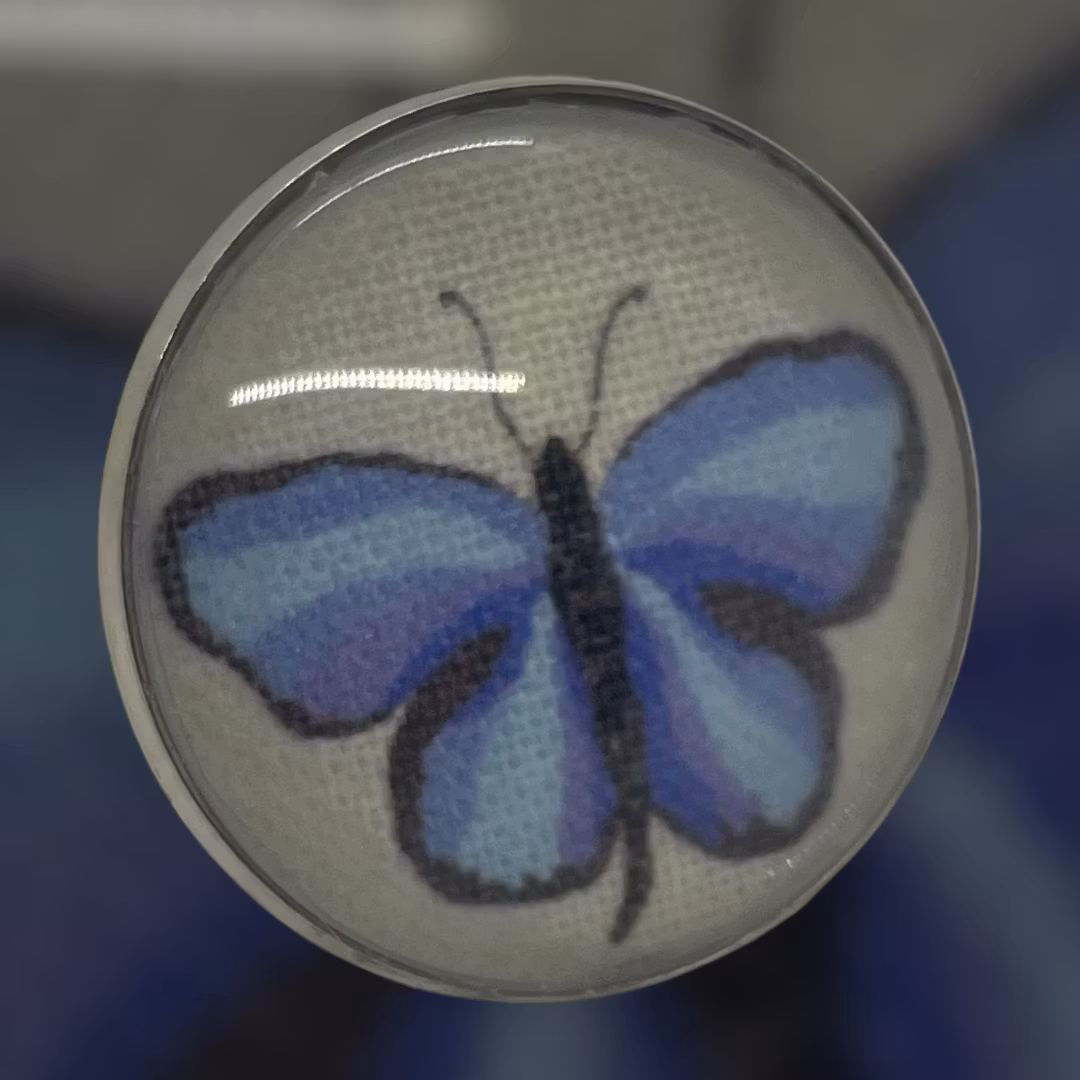 Inuti ringen har jag monterat min egen blåvinge på percale.