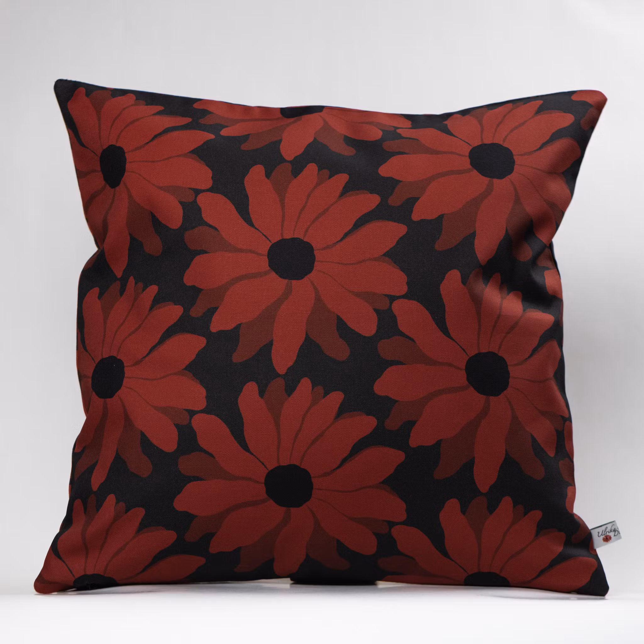 Fodralet består av 100 % bomull (230 g/m2) och mäter +- 45 x 45 cm. Det svarta drar mer åt mörkt grått än kolsvart. Kuddfodralen är sydda av mänsklig hand, så små variationer kan förekomma. Vill du ha en lite "bulligare" kudde som fyller ut fodralet mer, välj en 50 x 50 innerkudde. Annars en i samma mått som fodralet. Läs noga igenom de "Skötselråd" du hittar i menyn, för att ditt fodral ska hålla sig fint länge.