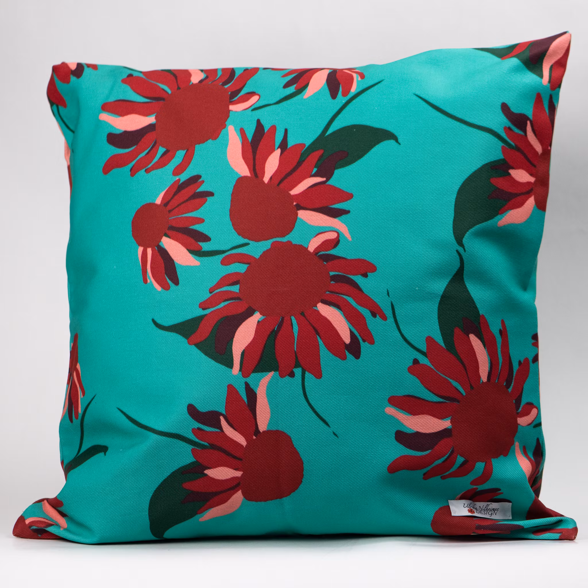 Fodralet består av 100 % bomull (375 g/m2) och mäter 50 x 50 cm. Vill du ha en lite "bulligare" kudde som fyller ut fodralet mer, välj en större innerkudde, en i 55 x 55 cm kan passa. Annars en i samma mått som fodralet. Läs noga igenom de "Skötselråd" du hittar i menyn, för att ditt fodral ska hålla sig fint länge.
